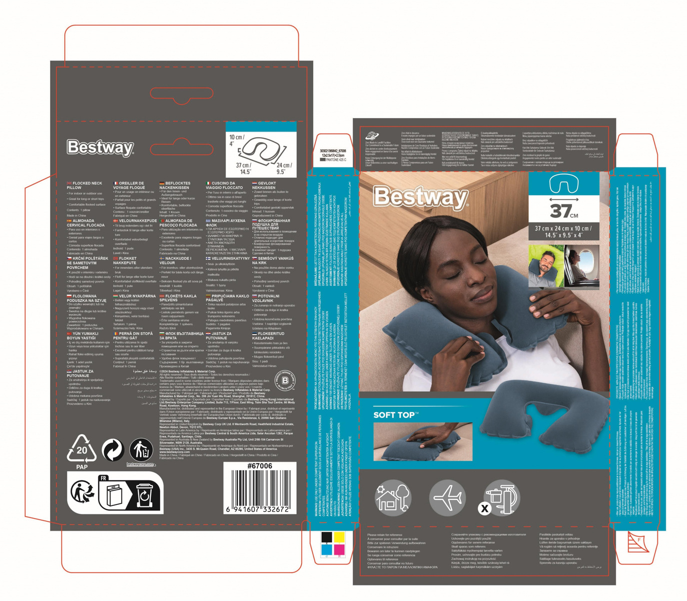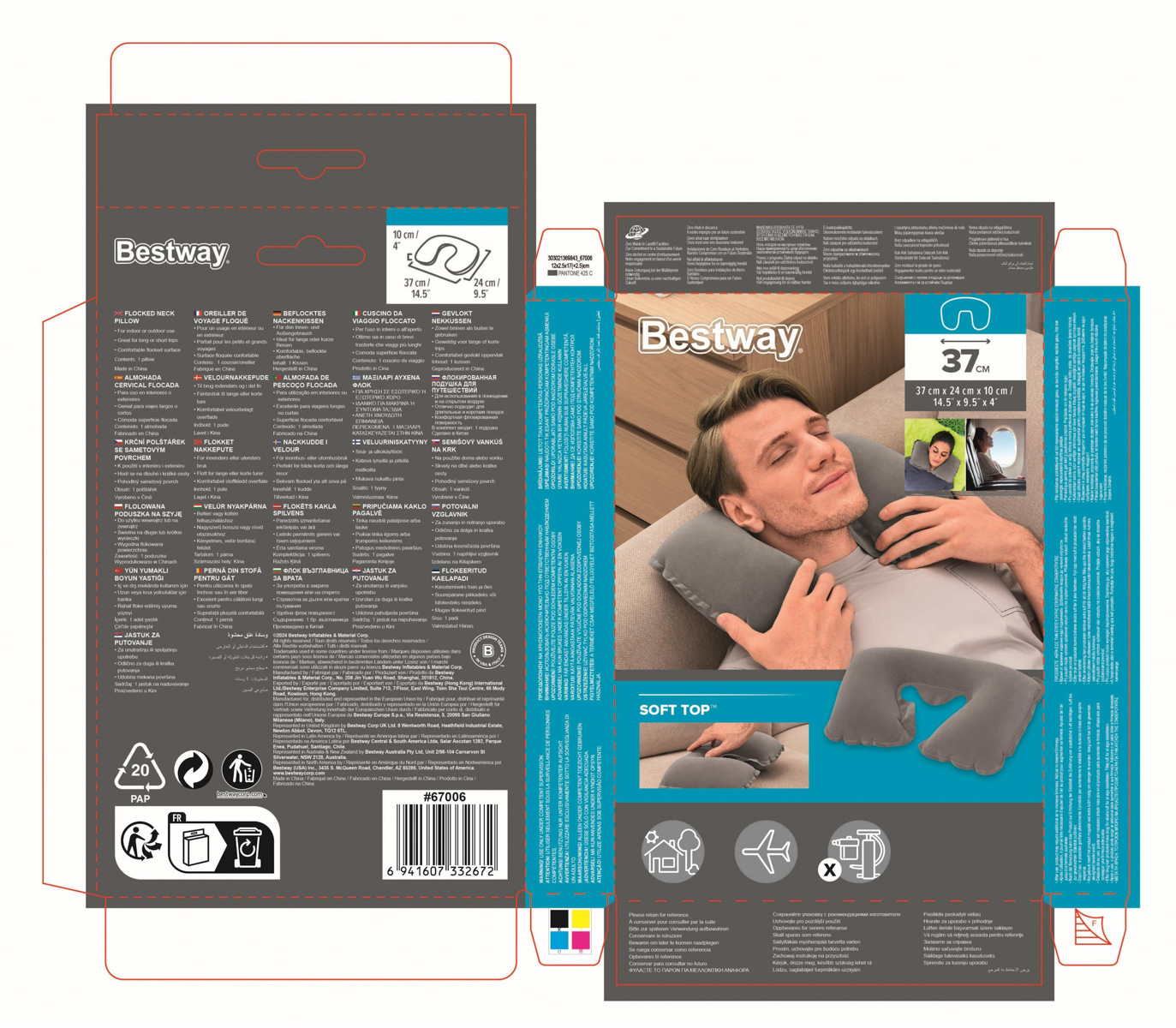 Bestway Nafukovací cestovní polštář podkova 37x24x10cm