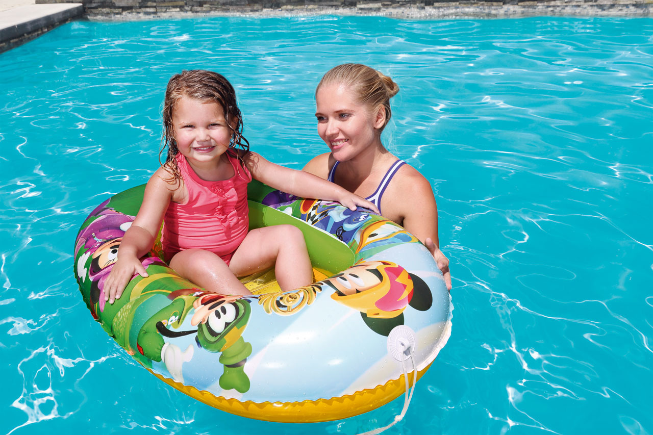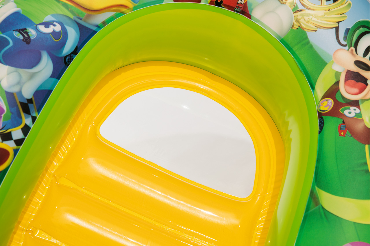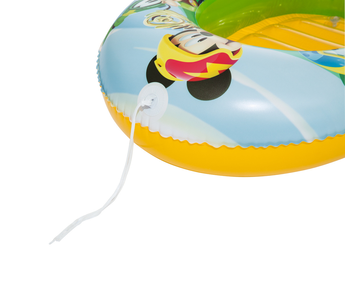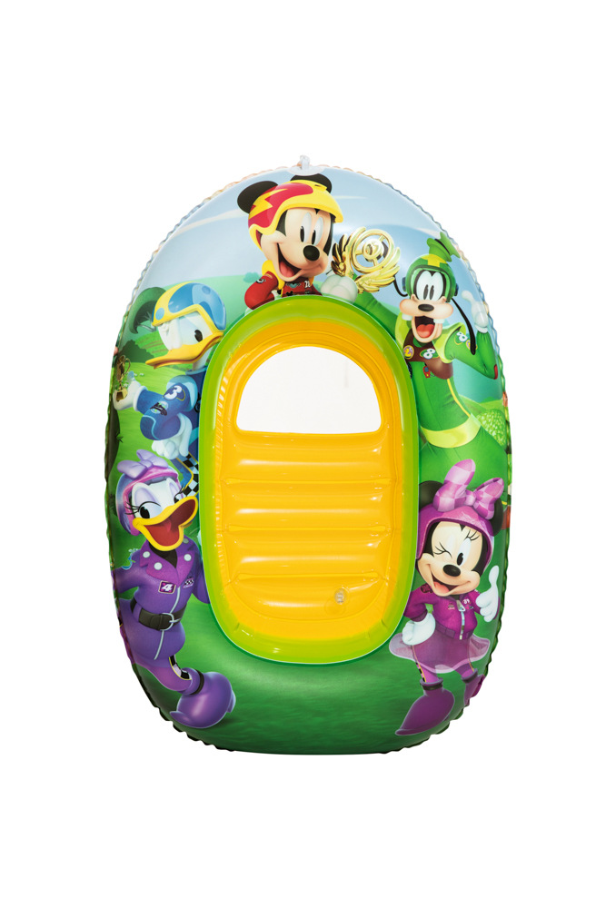 Nafukovací člun Bestway s originálním potiskem oblíbených postaviček z Mickeyho klubíku. Průhledné okénko v úrovni hlavy je navrženo tak, aby děti mohly pozorovat vše, co se děje pod hladinou. Pro pohodlné sezení je nafukovací také dno člunu. Pro možnost tažení je součástí i provaz/lanko, které je pevně uchyceno v plastovém oušku. Dopřejte svým dětem pohádkové lenošení na vodě. Člun má bezpečnostní ventily. Je vyroben z kvalitního a odolného vinylu. Rozměr: 102 x 69 cm. Obsahuje: 1 nafukovací člun. Používejte pouze pod dohledem dospělé osoby. Věk: 3-6 let