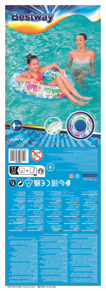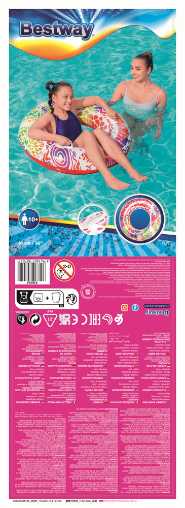 Bestway Nafukovací kruh s úchyty - léto, 2 barvy, průměr 91cm
