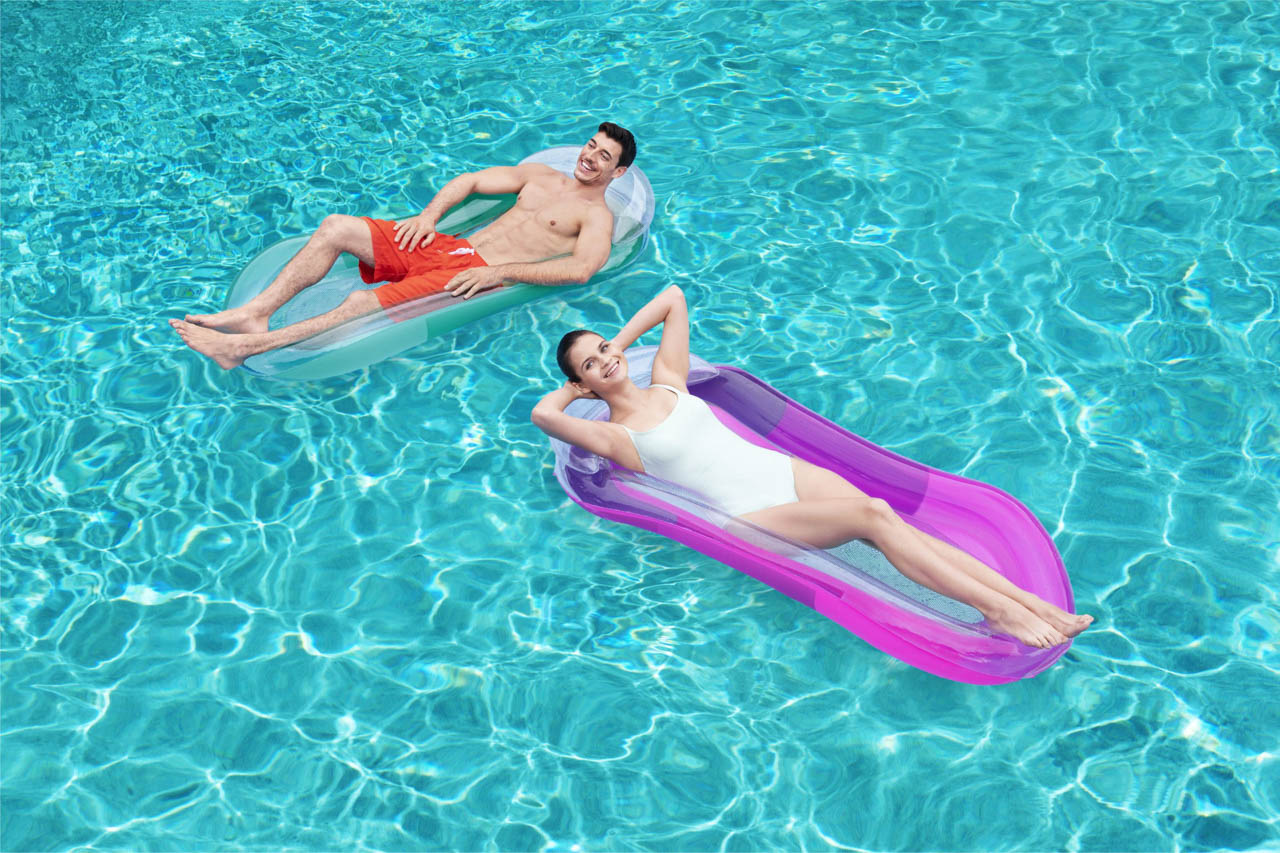 Bestway® Nafukovací lehátko s povrchem Color Shield™ a síťkou. Příjemná síťovina CoolDown™ je opatřena trvanlivým potahem, který brání jejímu poškození. Povrchová úprava Color Shield™ zabraňuje vyblednutí a změně barvy povrchu. Tvárná konstrukce – možné použití jako rovná nafukovací matrace, bazénové křeslo, nebo houpací síť. Lehátko má dvě vzduchové komory a pojistné ventily. Včetně opravné záplaty. Nafouknutá velikost: 22 x 81 x 114 cm. Nenafouknutá velikost: 87 x 140 cm. Rozměry balení: 19,8 x 19,8 x 4 cm. Určeno pro 1 osobu. Maximální nosnost: 100 kg. Věk: 14+