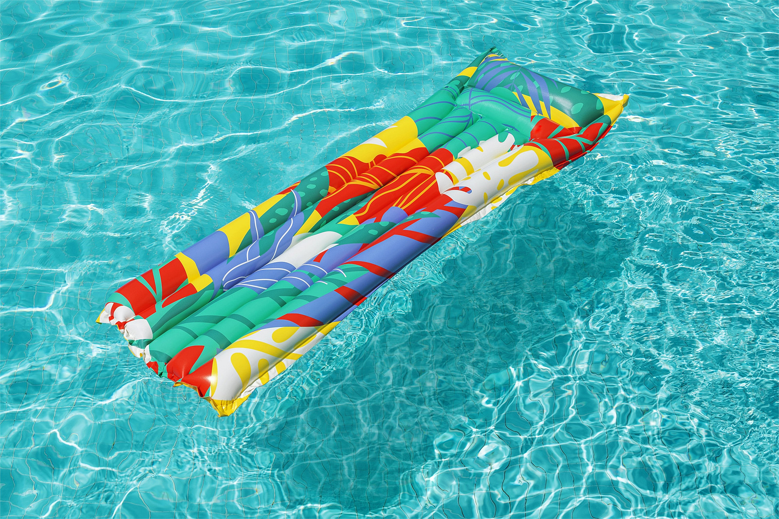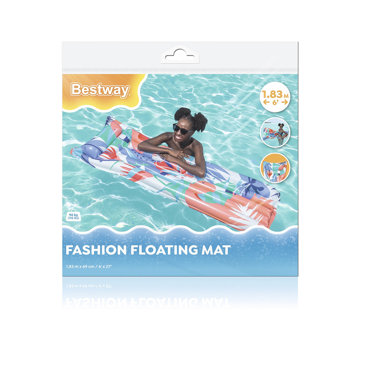 Bestway® Nafukovací lehátko Fashion. Toto jedinečné lehátko přináší nejen osvěžující ochlazení, ale také špetku tropické atmosféry. Lehátko má dvě vzduchové komory a pojistné ventily. Vyrobeno z odolného PVC. Včetně opravné záplaty. Assort je náhodný mix modelů. Výběr nelze ovlivnit. Čtyři varianty v kolekci. Rozměry v nafouknutém stavu: 170 x 54 x 15 cm. Rozměry ve vyfouknutém stavu: 183 x 69 cm. Rozměry balení: 32 x 29 x 2 cm. Určeno pro 1 osobu. Používejte pouze pod dohledem dospělé osoby a ve vodě, kde dítě dosáhne na dno. Maximální nosnost: 100 kg. Věk: 14+