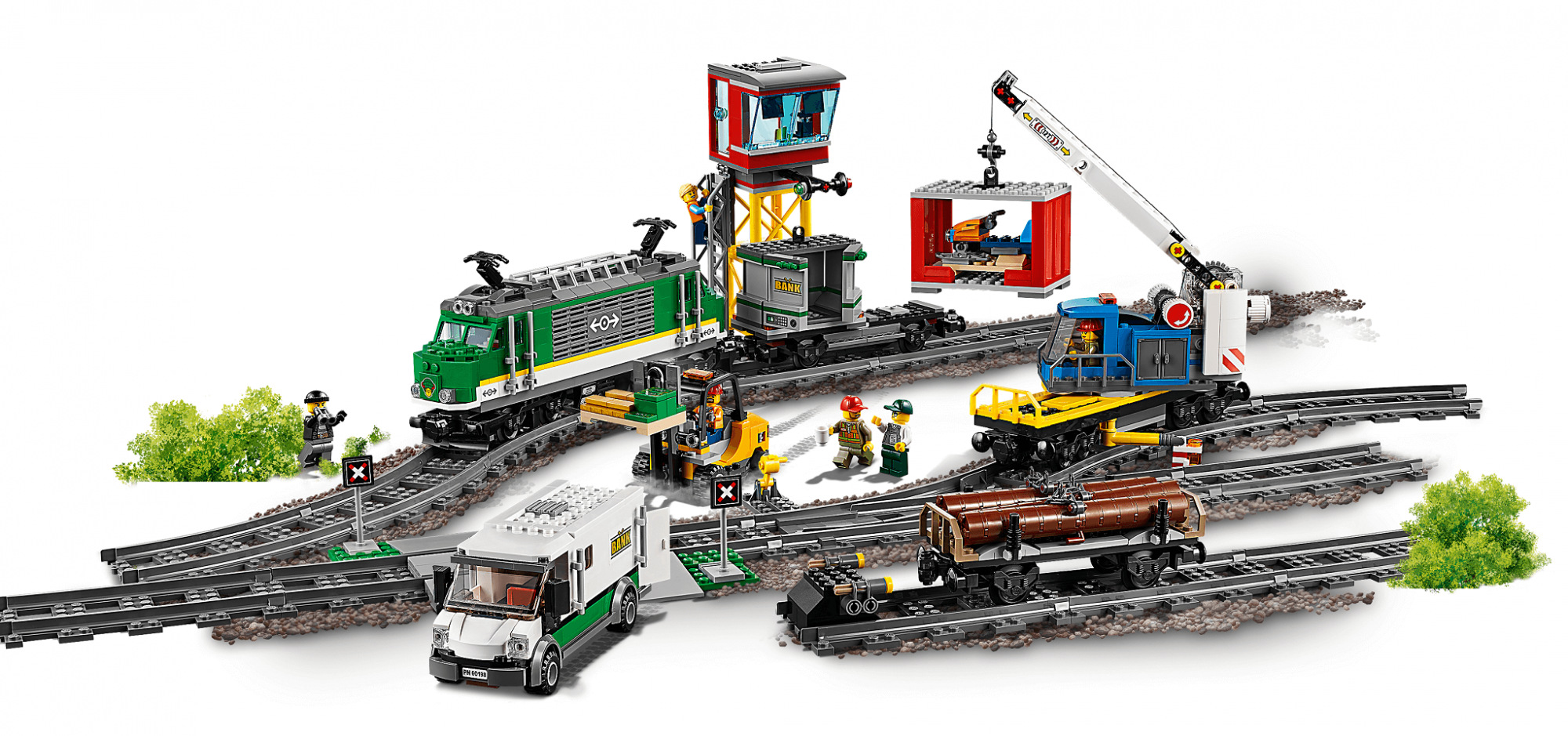 Obsahuje kontrolní věž s žebříkem a signalizačním zařízením, oválnou trať s celkem 32 díly kolejí a výhybkou, obrněný transportér s penězi s otevíracími dveřmi a vysokozdvižný vozík.