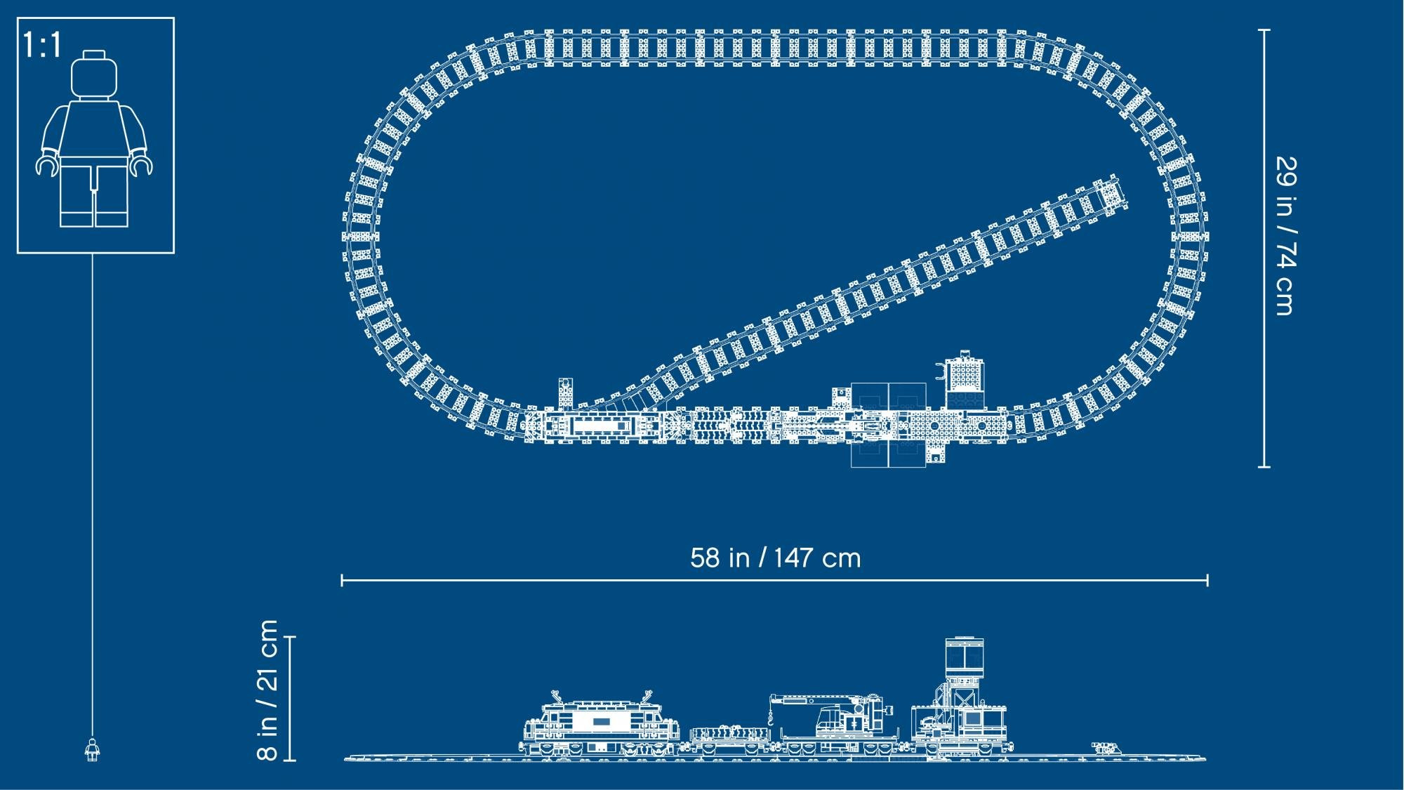 Nákladní vlak měří celkem přes 11 cm na výšku, 82 cm na délku a 6 cm na šířku.
