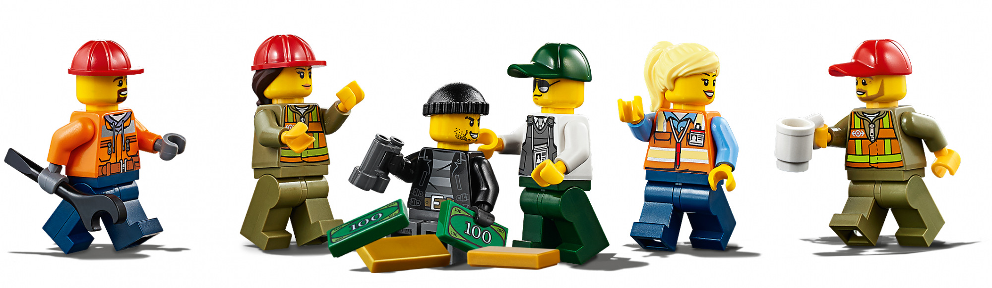 Obsahuje 6 LEGO® minifigurek: 4 drážní pracovníci, bezpečnostní důstojník a zločinec.