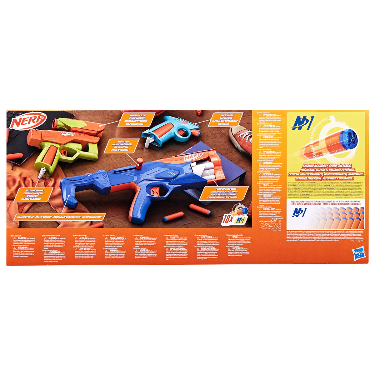 Pistole Nerf N Series Gear up pack, se kterými se jen tak nějaká hra neomrzí. Balení zahrnuje 3 různé blastry, 18 šipek, a také vyměnitelný zaměřovač a pažbu, což umožňuje vytvářet různé kombinace blastrů. Dva typy nabití blastru: mechanismus šroubového závitu a tah za úchop. Hra s Nerf podporuje spolupráci, rychlé rozhodování a přesnou mušku. Hra s pistolí zajistí neopakovatelnou atmosféru a pořádnou dávku zábavy. Vyrobeno z kvalitního plastu. Při hraní je doporučeno, aby děti použily bezpečnostní brýle (nejsou součástí). Rozměr balení: 26,03 x 60,96 x 6,66 cm. Vhodné od 8 let.