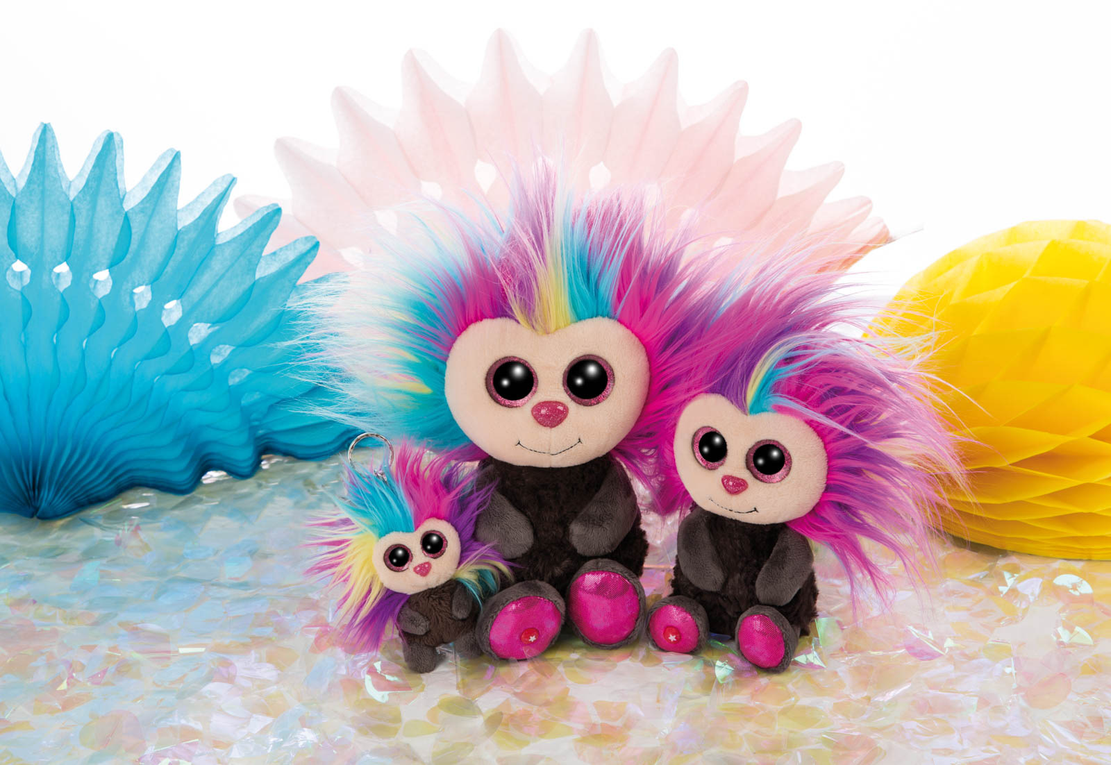 Zářivé zlaté třpytivé oči a roztomilý výraz obličeje s šedobílou maskou dělají z Mývala Clooneyho skvělou klíčenku. Z jeho zlatých třpytivých oček se budete rozplývat roztomilostí. Clooney se svým huňatým ocasem se na vás těší! Výška: 9cm. Věk: 3+