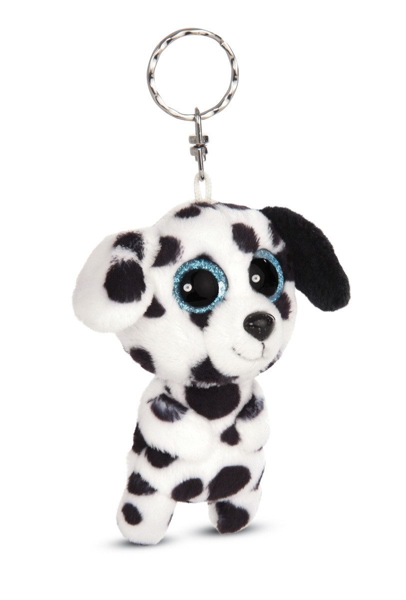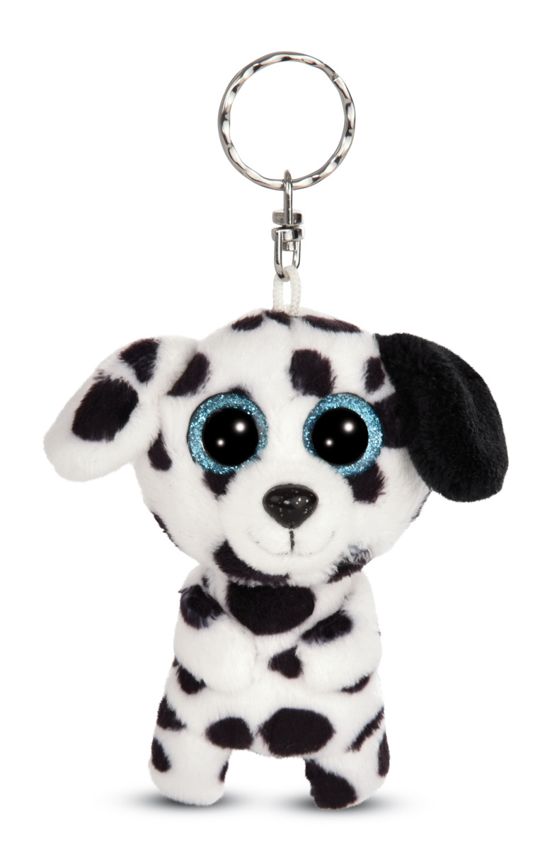 Roztomilý puntíkatý dalmatin s modrýma třpytivýma očima. S kroužkem na hlavě jako klíčenka. V sérii GREEN od Nici se téměř výhradně používají plyšové a výplňové materiály vyrobené z recyklovaných materiálů. Výška: 9cm. Věk: 3+