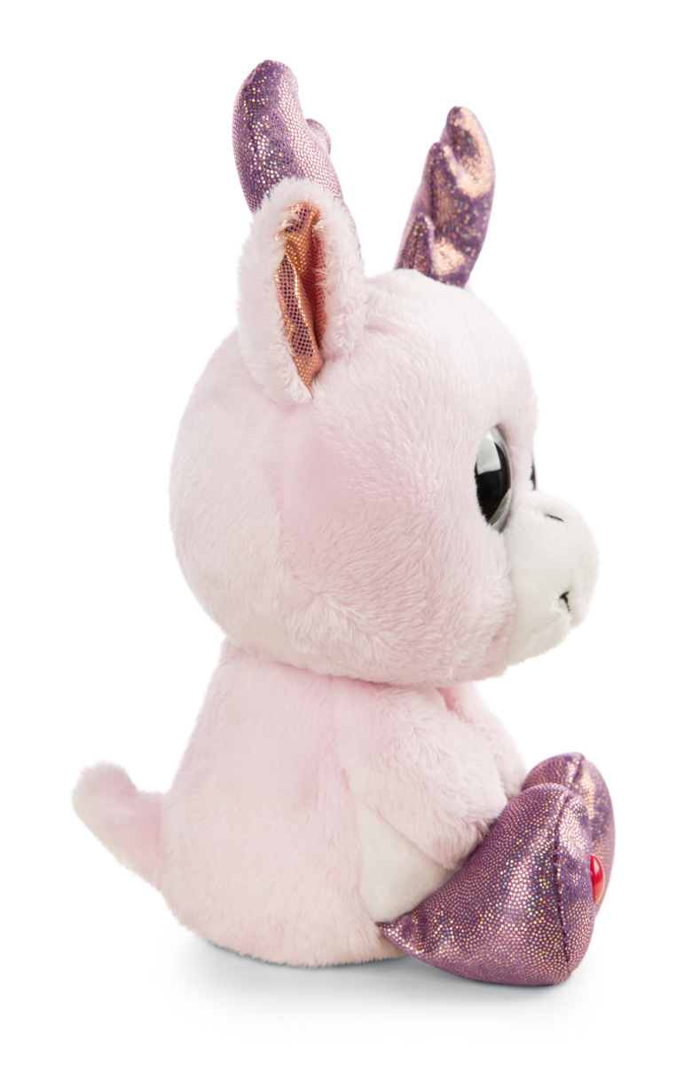 Slyšíte zvonit zvony? Plyšový, sladký sob Rosani ze zimní edice ohlašuje zimní a vánoční období. Sob Rosani okouzluje malé i velké sobí fanoušky svým růžovým mazlivým kožíškem a velkýma třpytivýma očima. Barevně sladěný třpytivý materiál v uších, na nohou a působivé parohy rozzáří oči fanoušků. Rosani je součástí NICI Green, udržitelného světa produktů NICI! Všechny produkty NICI Green využívají téměř výhradně recyklované materiály, které jsou vyráběny především z PET lahví. Výška: 15cm. Věk: 0+