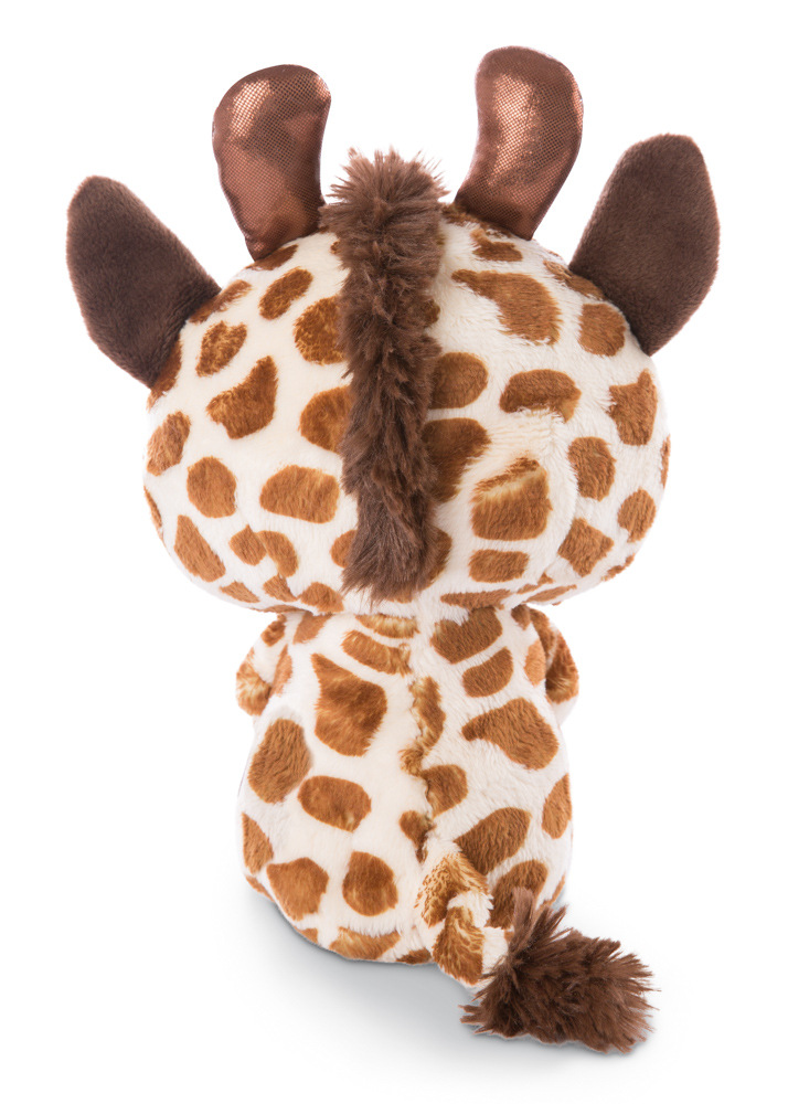 Žirafa GLUBSCHIS Halla má hnědé skvrny, jak se na pravou žirafu sluší. Jak je pro GLUBSCHI typické, má velké třpytivé oči a na hlavě okouzlující chomáč hnědých vlasů. Její roztomilá ouška jsou lemována třpytivou látkou a její nohy se třpytí červenou hvězdou NICI. Výška: 15cm Věk: 0+