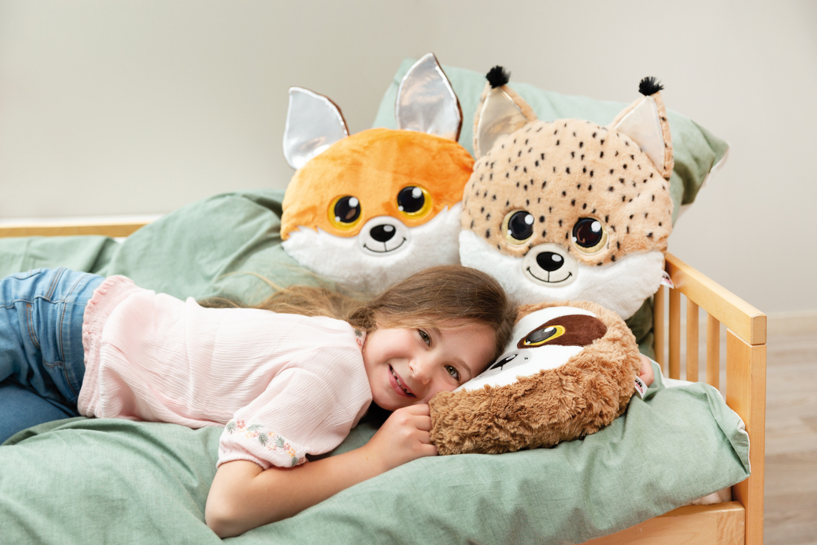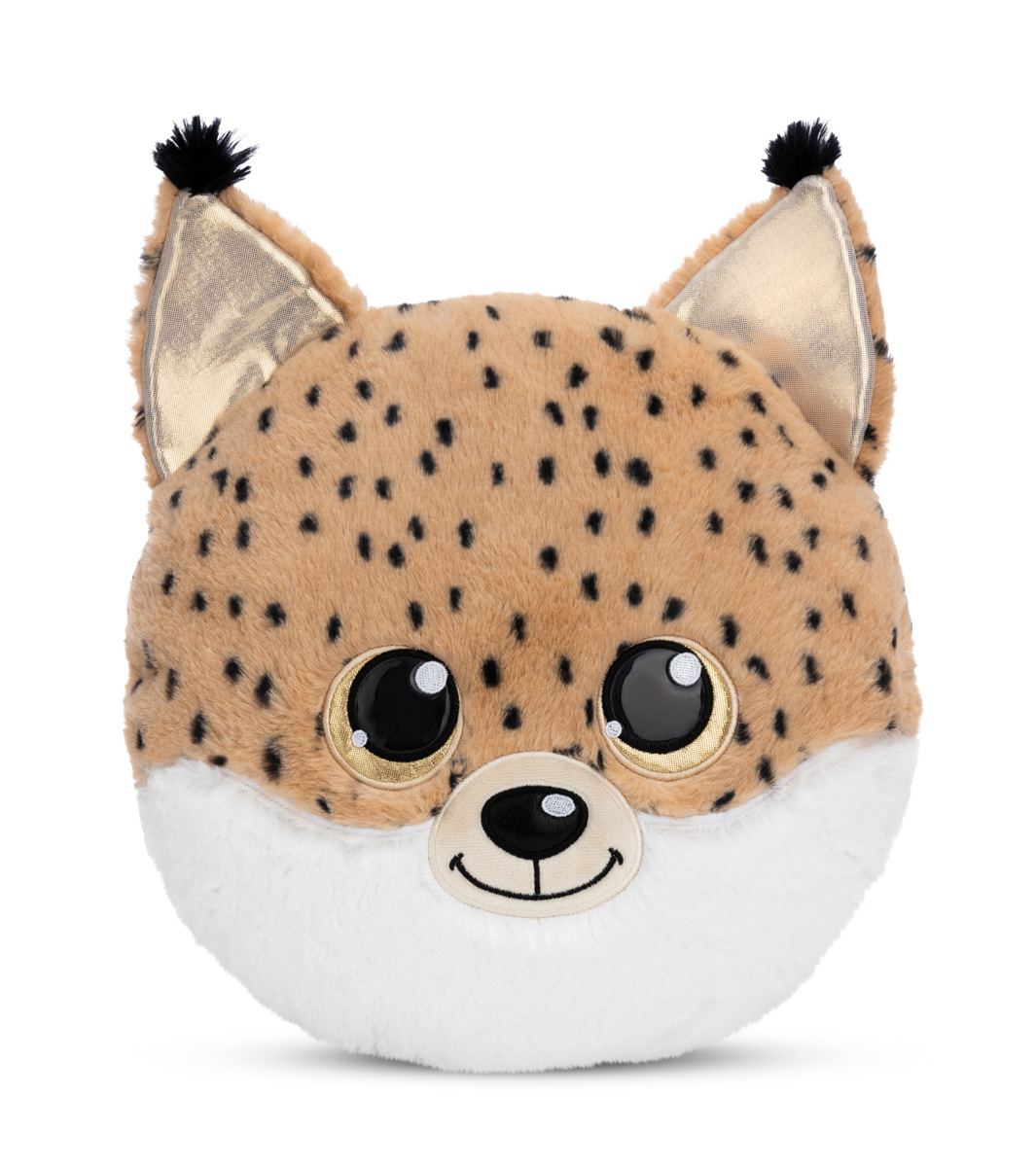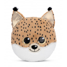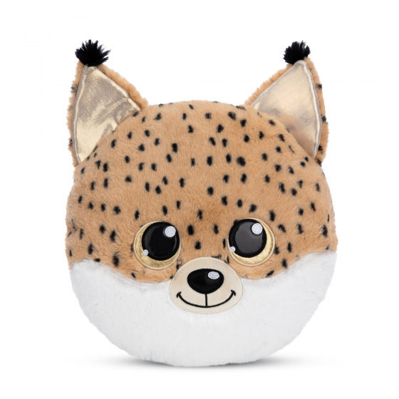 Kulatý plyšový polštářek GLUBSCHIS rys Lenzo ve tvaru rysí hlavy je nejen heboučký, ale také fascinuje okouzlujícím výrazem obličeje s velkýma třpytivýma očima ve zlaté barvě, lesklým černým nosem i rysíma ušima se zlatým třpytivým materiálem uvnitř. Polštářek z hnědého plyše NICI s černými flíčky je skvělým poutačem a dekorativním doplňkem do dětského pokoje. Ať už jako plyšový polštářek na přespání nebo na výlety, jako pohodlná opěrka hlavy na čtení, na spaní nebo jako další sběratelský kousek do vašeho vlastního plyšového světa GLUBSCHIS. Rozměr polštářku: 32 x 32 x 11 cm. Věk 0 m+