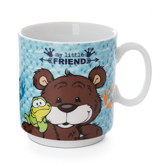 Porcelánový hrneček je zdobený roztomilými ilustracemi medvídka se žabákem. Začněte den s tímto veselým hrnečkem s roztomilými kamarády. Objem: 250 ml. Vhodné do myčky. Věk: 3+