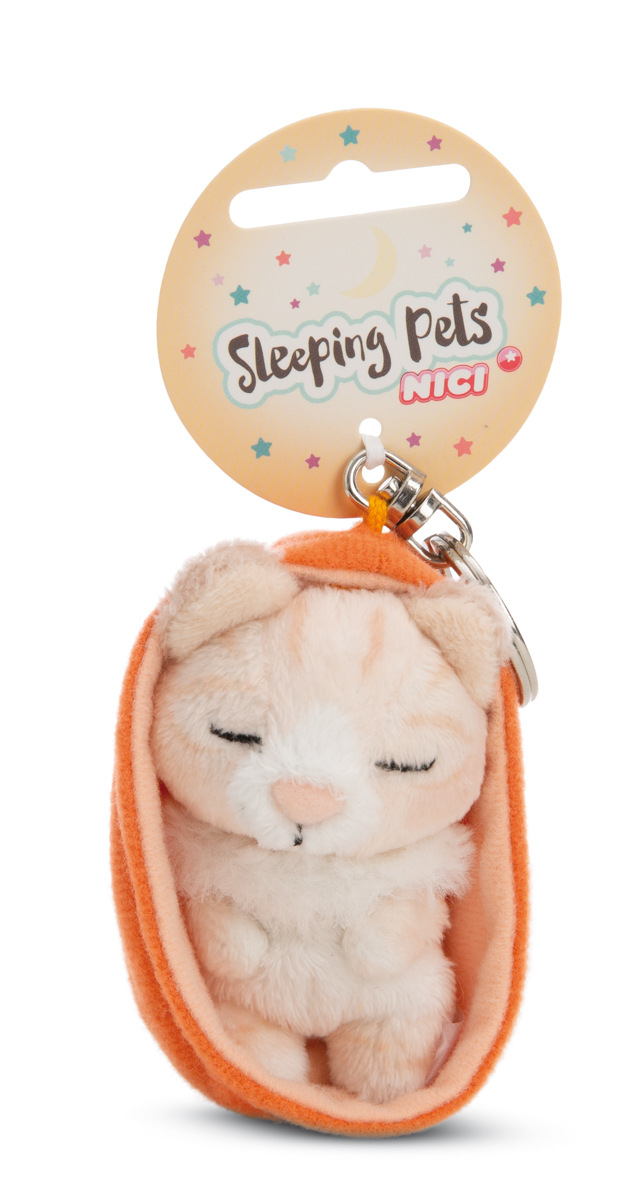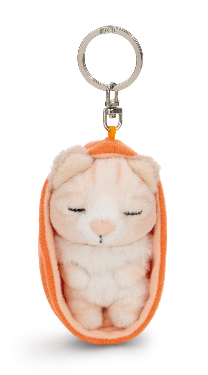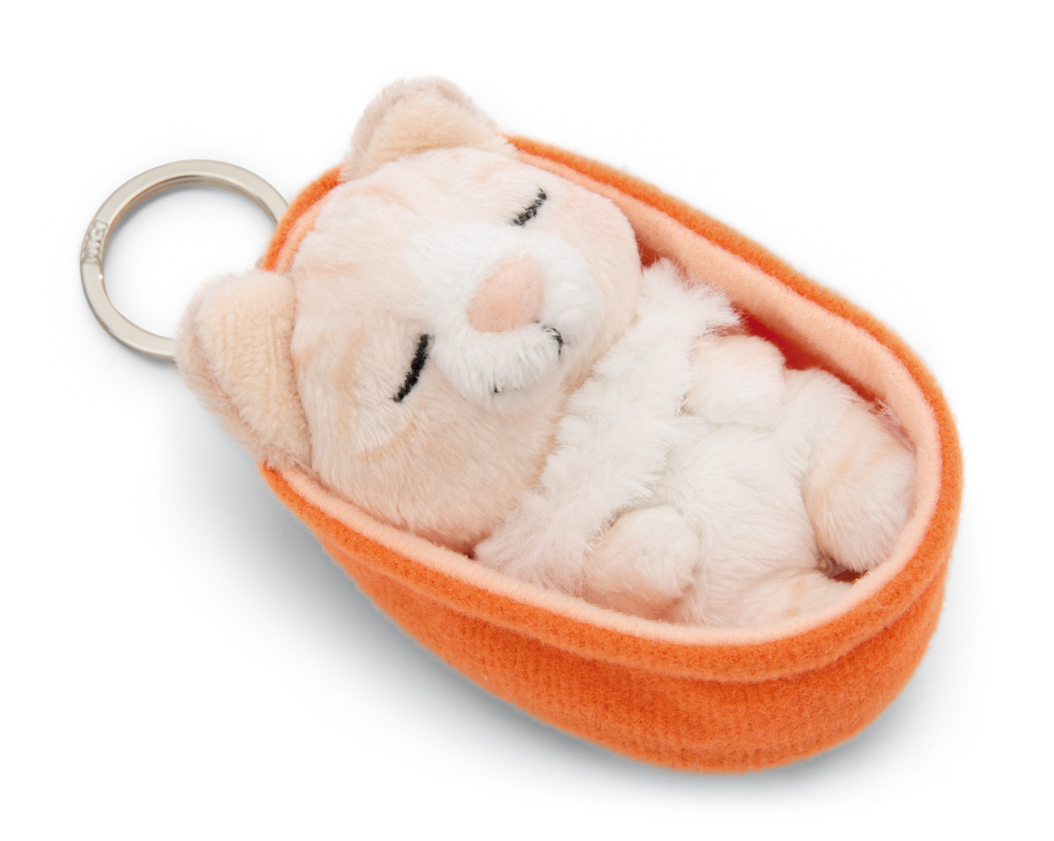 NICI klíčenka spící Kočička béžová 12 cm, oranžový košík, GREEN