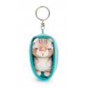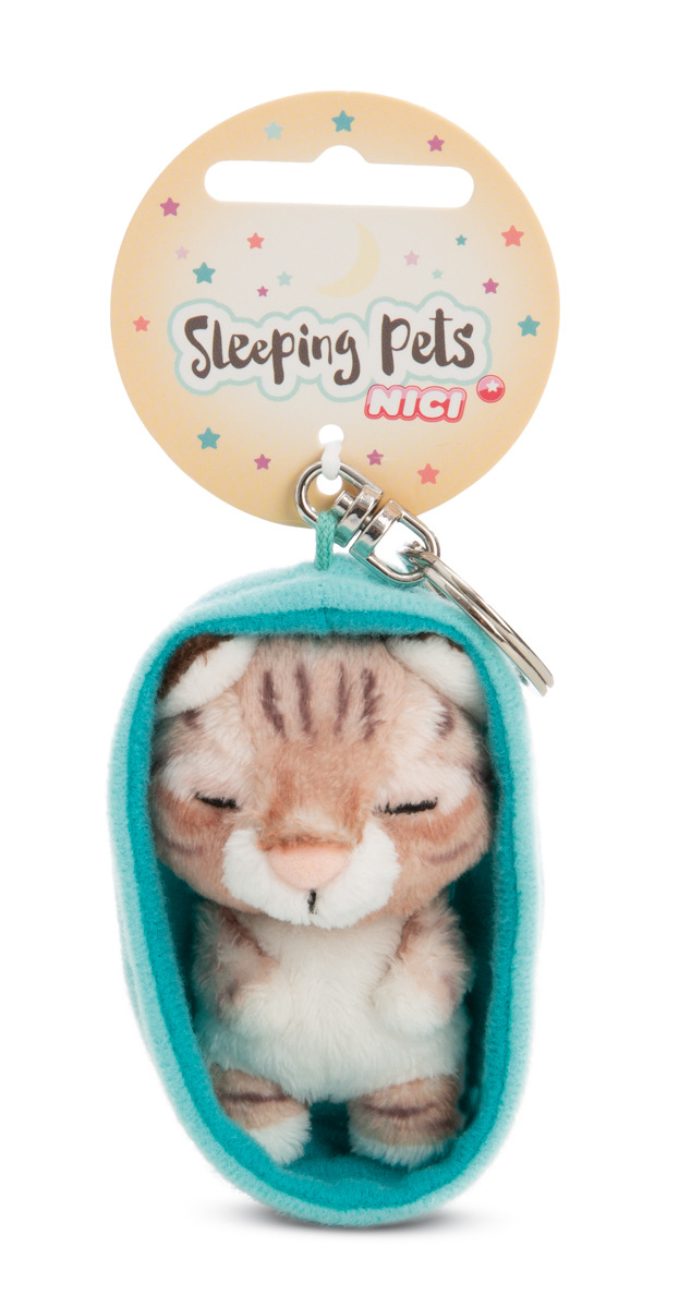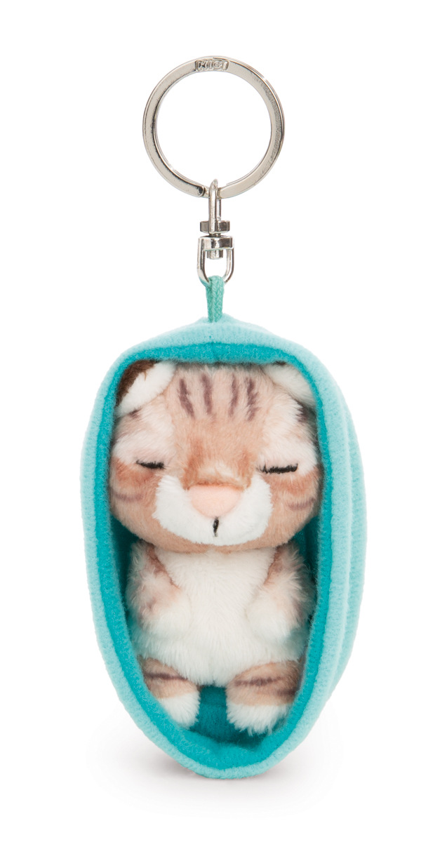 NICI klíčenka spící Kočička mourovatá 12 cm,světle modrý košík, GREEN