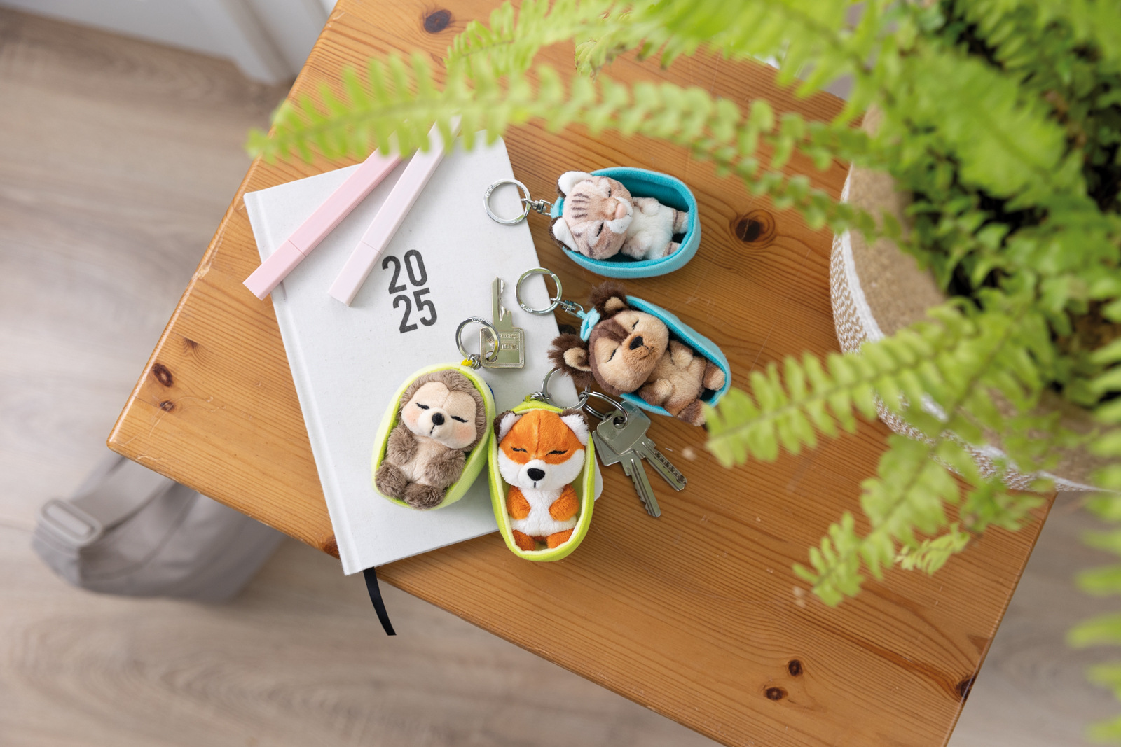 Kdo se to uvelebil ve světle modrém plyšovém košíčku? Je to malá spící kočička vyrobená z měkoučkého plyše v hnědo-bílém odstínu. Kočička vypadá neodolatelně roztomile, ale je také super praktickým doplňkem. Ať už jako milý dárek, nebo jako talisman pro štěstí – spící kočička z kolekce Sleeping Pets bude nepostradatelnou součástí vašeho každodenního života. Plyšovou klíčenku lze pomocí pevného kovového kroužku připevnit na klíče, batoh, školní tašku nebo peněženku. Klíčenka je součástí světa produktů NICI GREEN. Pro produkty NICI GREEN se používá téměř výhradně plyš a výplňový materiál vyrobený z recyklovaných materiálů. Pro tento účel se na RPET zpracovávají primárně recyklované PET lahve. Rozměry klíčenky: 12,5 x 5 x 4,5 cm. Věk 3+