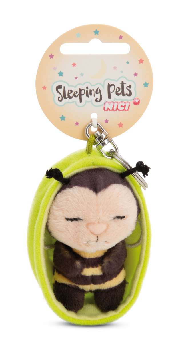 NICI klíčenka spící Včelka 12 cm, zelený košík, GREEN