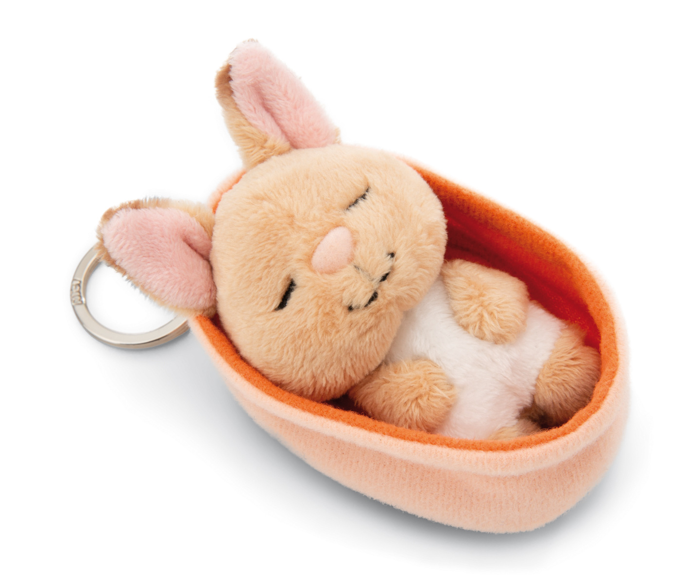NICI klíčenka spící Zajíček 12 cm, světle oranžový košík, GREEN