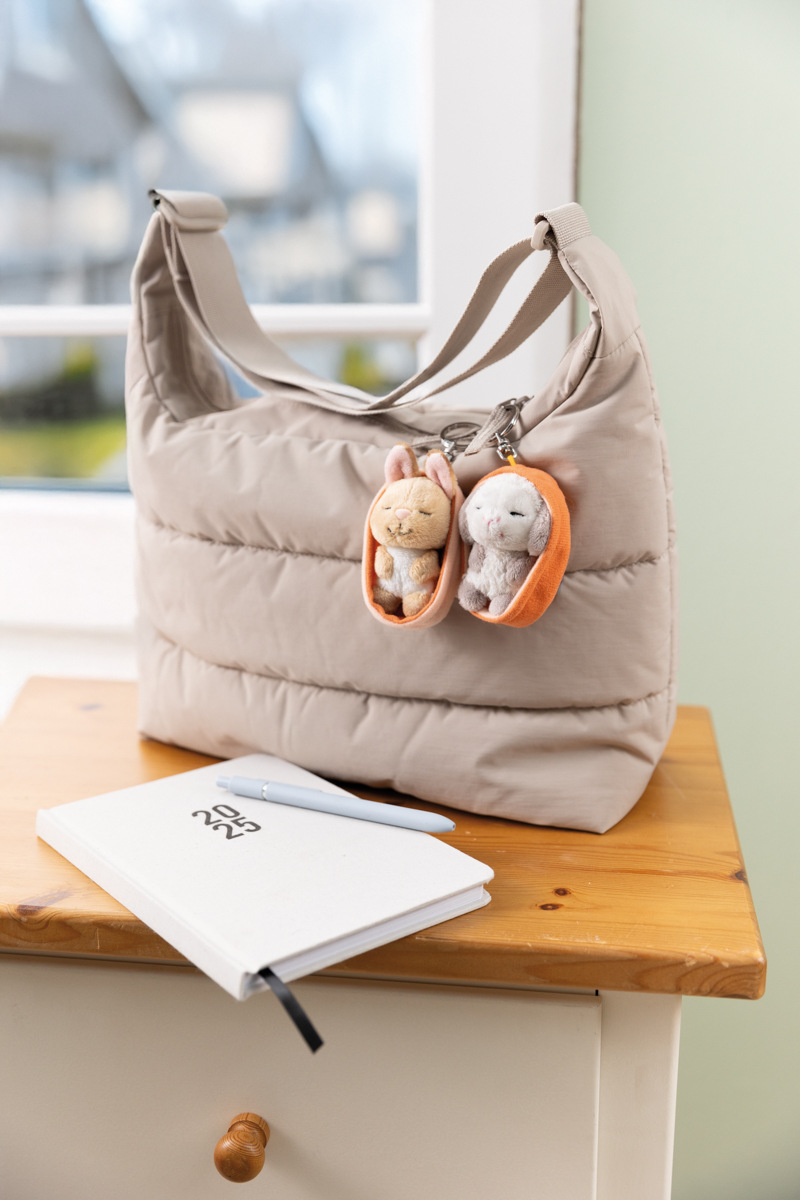 Kdo se to uvelebil ve světle oranžovém plyšovém košíčku? Je to malý spící zajíček vyrobený z měkoučkého plyše v hnědo – bílém odstínu. Zajíček vypadá neodolatelně roztomile, ale je také super praktickým doplňkem. Ať už jako milý dárek, nebo jako talisman pro štěstí – spící zajíček z kolekce Sleeping Pets bude nepostradatelnou součástí vašeho každodenního života. Plyšovou klíčenku lze pomocí pevného kovového kroužku připevnit na klíče, batoh, školní tašku nebo peněženku. Klíčenka je součástí světa produktů NICI GREEN. Pro produkty NICI GREEN se používá téměř výhradně plyš a výplňový materiál vyrobený z recyklovaných materiálů. Pro tento účel se na RPET zpracovávají primárně recyklované PET lahve. Rozměry klíčenky: 12,5 x 5,5 x 4,5 cm. Věk 3+