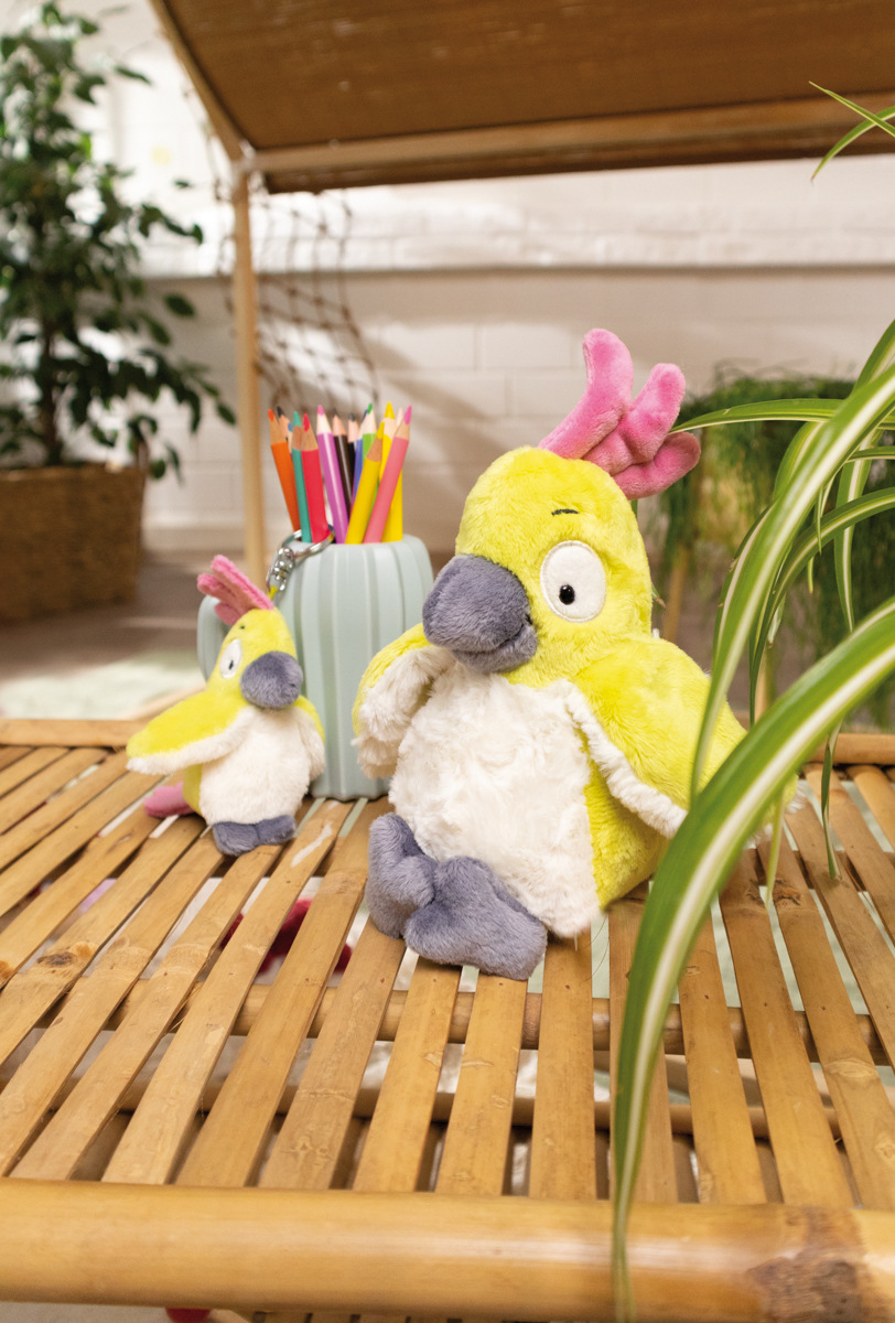 Papoušek kakadu Jaya s kroužkem na hlavě jako klíčenka. V sérii GREEN od Nici se téměř výhradně používají plyšové a výplňové materiály vyrobené z recyklovaných materiálů. Výška 10cm. Věk:3+