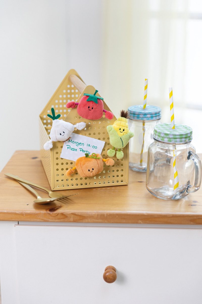 Oranžová plyšová dýně s roztomilými malými ručičkami jako Mini MagNICI je plyšovým magnetem, který je zároveň praktickým i dekorativním doplňkem. Se svým kouzelným výrazem tváře vykouzlí malá dýně z nadýchaného plyše úsměv na každé tváři a rychle se stane nepřehlédnutelným doplňkem na lednici nebo magnetické tabuli. Mini MagNICI je součástí světa produktů NICI GREEN. Pro produkty NICI GREEN se používá téměř výhradně plyš a výplňový materiál vyrobený z recyklovaných materiálů. Pro tento účel se na RPET zpracovávají primárně recyklované PET lahve. Rozměry MagNICI: 6 x 7 x 2,5 cm. Rozměry balení: 10 x 7 x 2,5 cm. Věk 3+