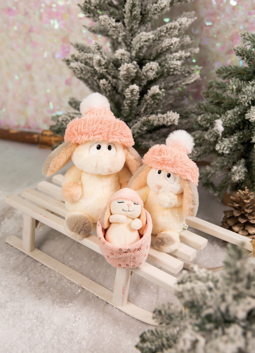 Dnes je velký den v severské vesnici. Každoroční závod sáňkařů klubu zimních sportů začne za pár minut a každý ze tří favoritů bude nadšeně leštit svoje závodní vozidla. Kdo vyhraje závod tentokrát? Liška, drzý zajíček, Noshy tučňák nebo sob Jonte? Poté se vystřelí ze startovací pistole. Všichni současně spadnou ze saní a valí se přes cílovou čáru. Nyní jsou tři vítězové, kteří si zaslouží velký zlatý pohár naplněný lahodnými vánočními sušenkami. Je vyroben převážně z recyklovaných plastových lahví a je tedy nejen skvělým kamarádem, ale také šetrnější k životnímu prostředí. Králíček Liska s huňatou čepicí. Výška: 25cm Věk: 0+