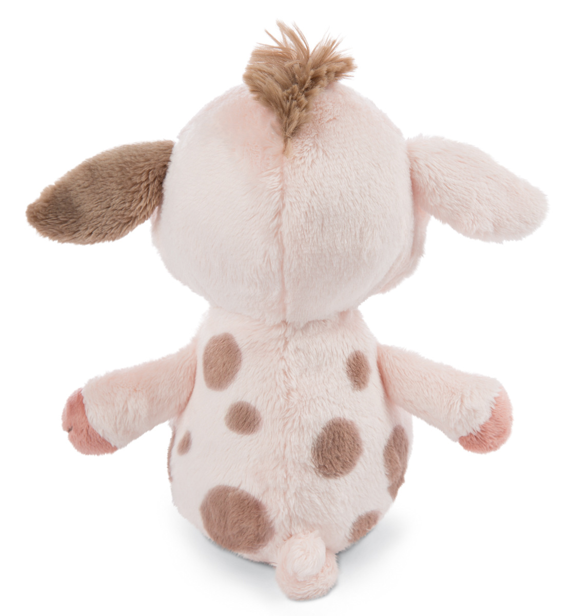 Žirafa GLUBSCHIS Halla má hnědé skvrny, jak se na pravou žirafu sluší. Jak je pro GLUBSCHI typické, má velké třpytivé oči a na hlavě okouzlující chomáč hnědých vlasů. Její roztomilá ouška jsou lemována třpytivou látkou a její nohy se třpytí červenou hvězdou NICI. Výška: 25cm Věk: 0+