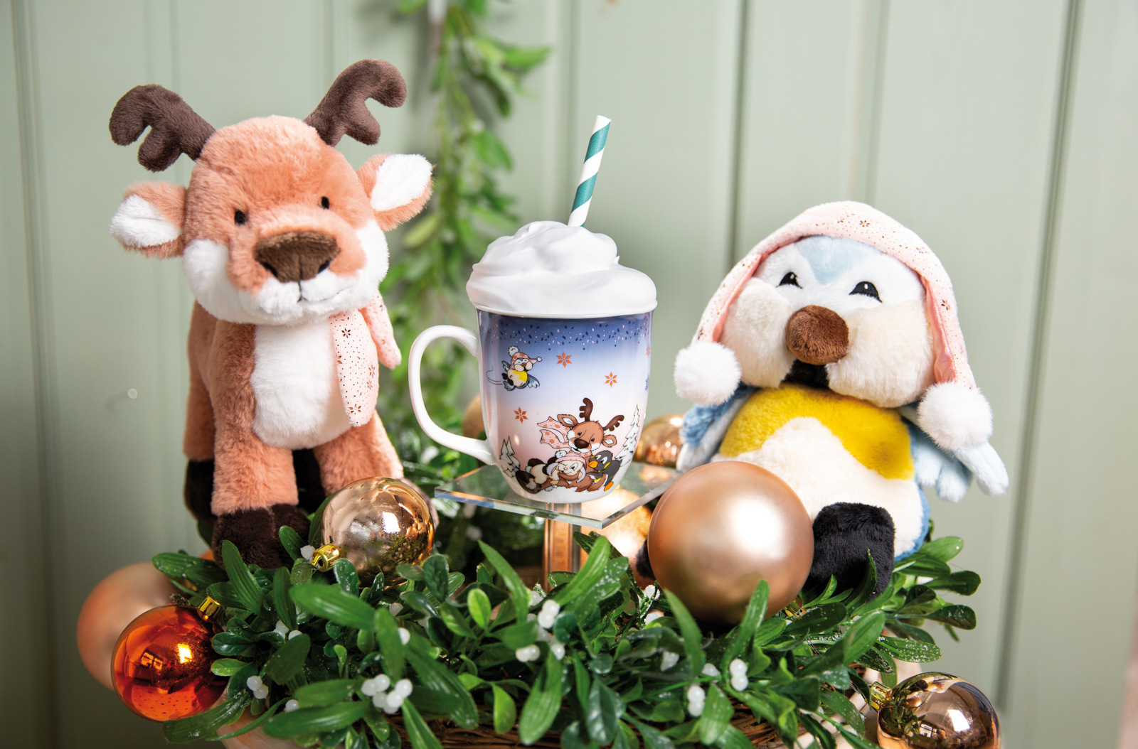 Dnes je velký den v severské vesnici. Každoroční závod sáňkařů klubu zimních sportů začne za pár minut a každý ze tří favoritů bude nadšeně leštit svoje závodní vozidla. Kdo vyhraje závod tentokrát? Liška, drzý zajíček, Noshy tučňák nebo sob Jonte? Poté se vystřelí ze startovací pistole. Všichni současně spadnou ze saní a valí se přes cílovou čáru. Nyní jsou tři vítězové, kteří si zaslouží velký zlatý pohár naplněný lahodnými vánočními sušenkami. Je vyroben převážně z recyklovaných plastových lahví a je tedy nejen skvělým kamarádem, ale také šetrnější k životnímu prostředí. Drobný ptáček Andoli s ušankou s bambulemi. Výška: 22cm Věk: 0+