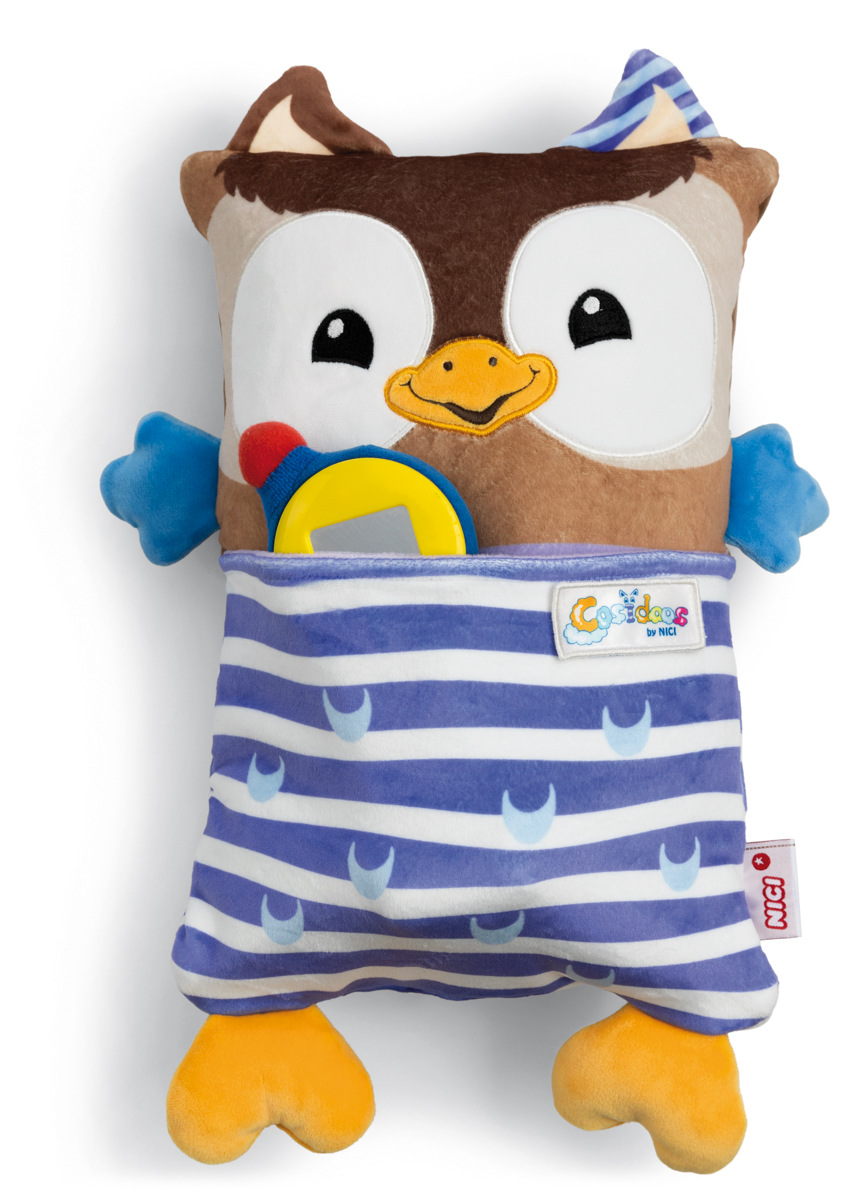 Sovička Cosidoos je nadýchaná plyšová hračka, kterou lze snadno proměnit z veselého denního společníka v uklidňující zvířátko a polštářek na spaní. Roztomilá sovička kombinuje zábavu při hraní s pocitem pohody a zároveň podporuje pochopení rytmu dne a noci. Díky tomu se stává přechod k večernímu usínání opravdovým zážitkem. Sovičku lze jediným jednoduchým pohybem ruky snadno převrátit a změnit tak barvy i design podle denní doby. Během dne sovička Cosidoos podporuje kreativní hru a stimuluje fantazii, zatímco v noci se stává něžným společníkem pro klidný noční spánek. Měkké kapsy jsou ideální pro uložení malých pokladů nebo důležitých předmětů. Oboustranný zázrak vyrobený z vysoce kvalitního, super měkkého plyše NICI je víc než jen hračka – je to věrný přítel, který plynule přechází mezi hrou a odpočinkem. Rozměry hračky: 30 x 20 x 11 cm. Věk 12 m+