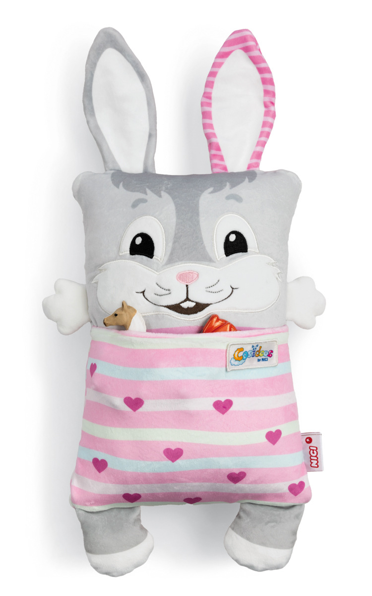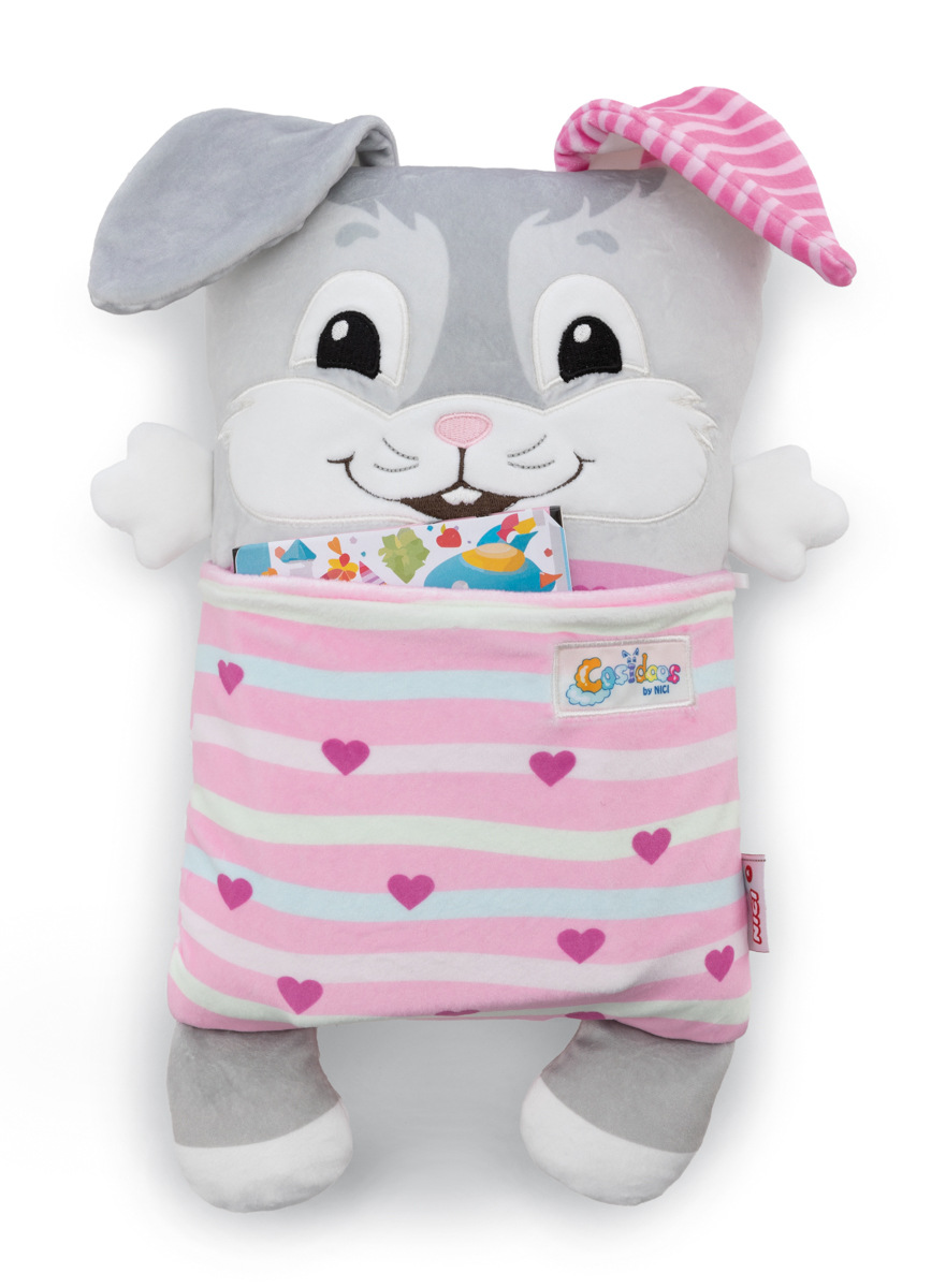 Zajíček Cosidoos je nadýchaná plyšová hračka, kterou lze snadno proměnit z veselého denního společníka v uklidňující zvířátko a polštářek na spaní. Roztomilý zajíček kombinuje zábavu při hraní s pocitem pohody a zároveň podporuje pochopení rytmu dne a noci. Díky tomu se stává přechod k večernímu usínání opravdovým zážitkem. Zajíčka lze jediným jednoduchým pohybem ruky snadno převrátit a změnit tak barvy i design podle denní doby. Během dne zajíček Cosidoos podporuje kreativní hru a stimuluje fantazii, zatímco v noci se stává něžným společníkem pro klidný noční spánek. Měkké kapsy jsou ideální pro uložení malých pokladů nebo důležitých předmětů. Oboustranný zázrak vyrobený z vysoce kvalitního, super měkkého plyše NICI je víc než jen hračka – je to věrný přítel, který plynule přechází mezi hrou a odpočinkem. Rozměry hračky: 30 x 20 x 11 cm. Věk 12 m+