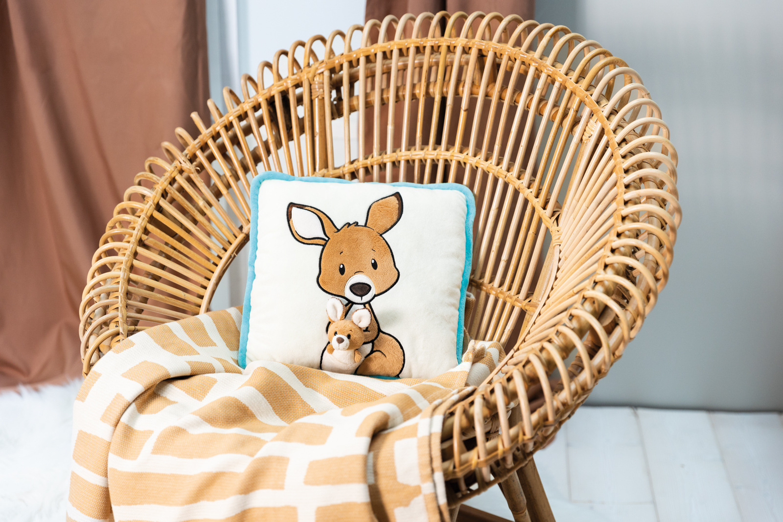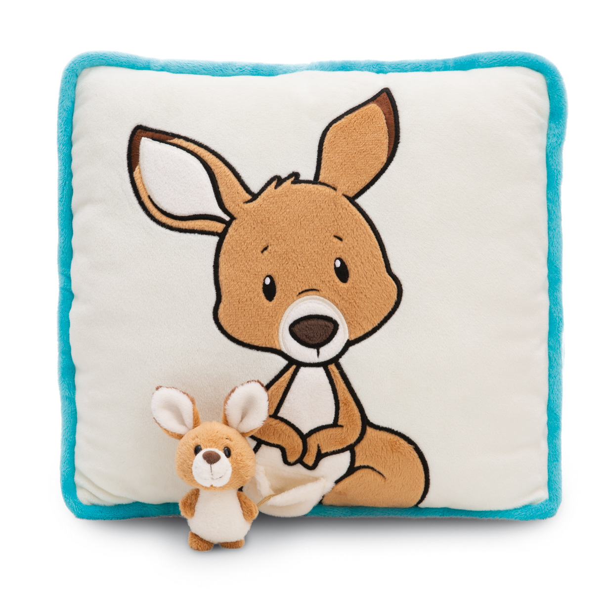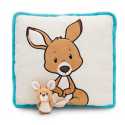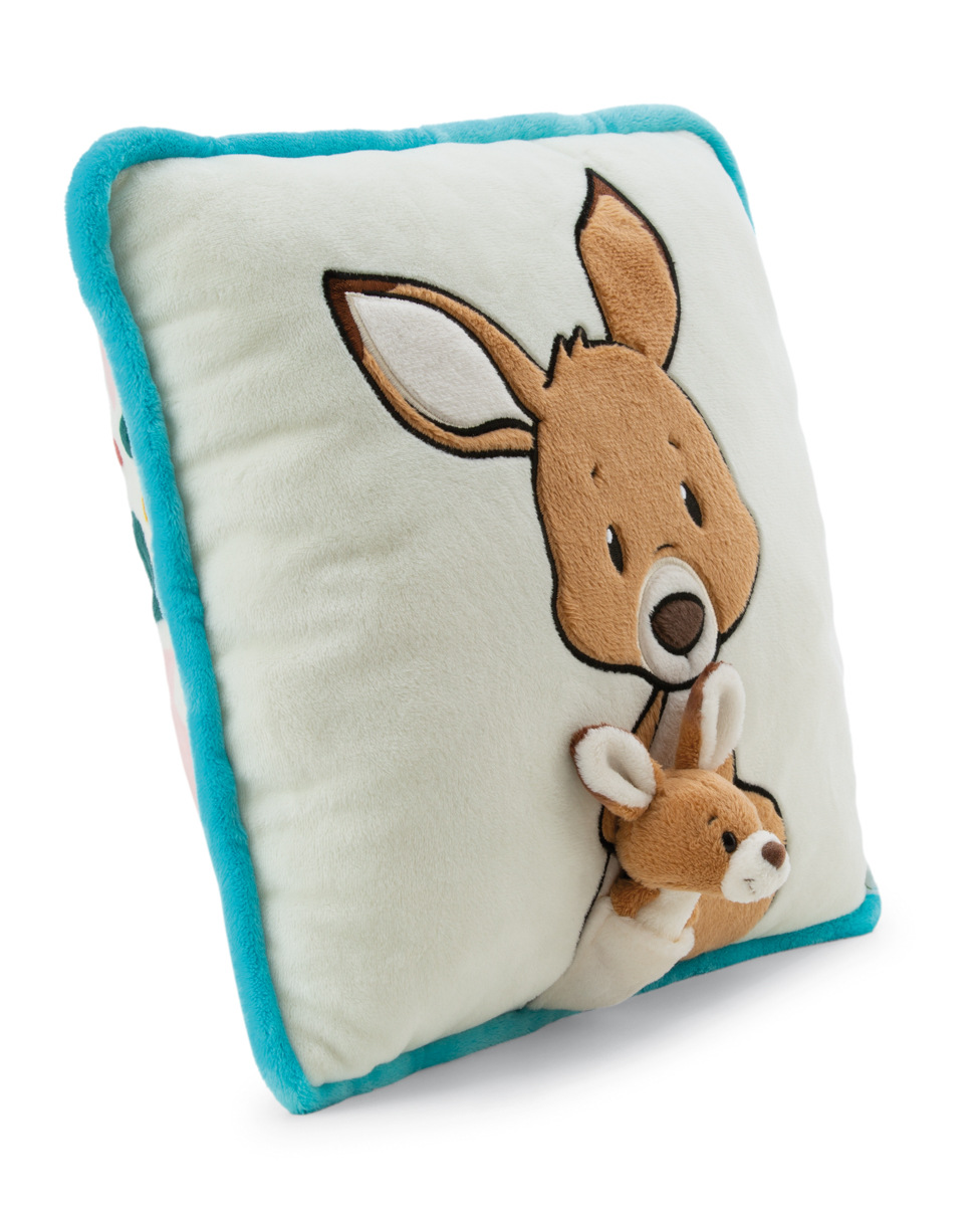 Čtvercový plyšový polštář z kolekce Wild Friends od NICI se vyznačuje vysoce kvalitní plyšovou aplikací roztomilé klokanky Kelly, která je vyobrazena na béžové přední straně plyšového polštáře. Z Kellyiny břišní kapsy vykukuje malé 3D klokaní mládě (7 cm), které je tam i připevněno. Zadní strana měkkého a nadýchaného polštáře je potištěna barevným grafickým vzorem a tyrkysové lemování zajišťuje, že se polštář Wild Friends stane stylovým dekorativním doplňkem v dětském pokoji. Polštář je součástí světa produktů NICI GREEN. . Pro produkty NICI GREEN se používá téměř výhradně plyš a výplňový materiál vyrobený z recyklovaných materiálů. Pro tento účel se na RPET zpracovávají převážně recyklované PET lahve. Rozměr polštáře: 30 x 30 x 13 cm. Věk: 0+