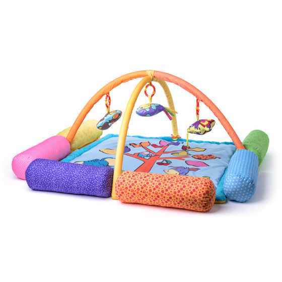Hrací aréna je vybavena odepínacími polštářky ve tvaru válečků. Tyto polštářky lze odepnout a využívat samotnou deku. Na hrazdě nad arénou jsou zavěšena zvířátka, které mohou děti pozorovat a po kterých se mohou natahovat a posilovat tím své břišní svaly. Tato hrazda je rovněž demontovatelná. Design této arény vytvořila německá návrhářka Britta Hurter. | Věk: 0+ | Rozměr: 96 x 96 cm | Rozměr samotné hrací plochy: 90 x 90 cm