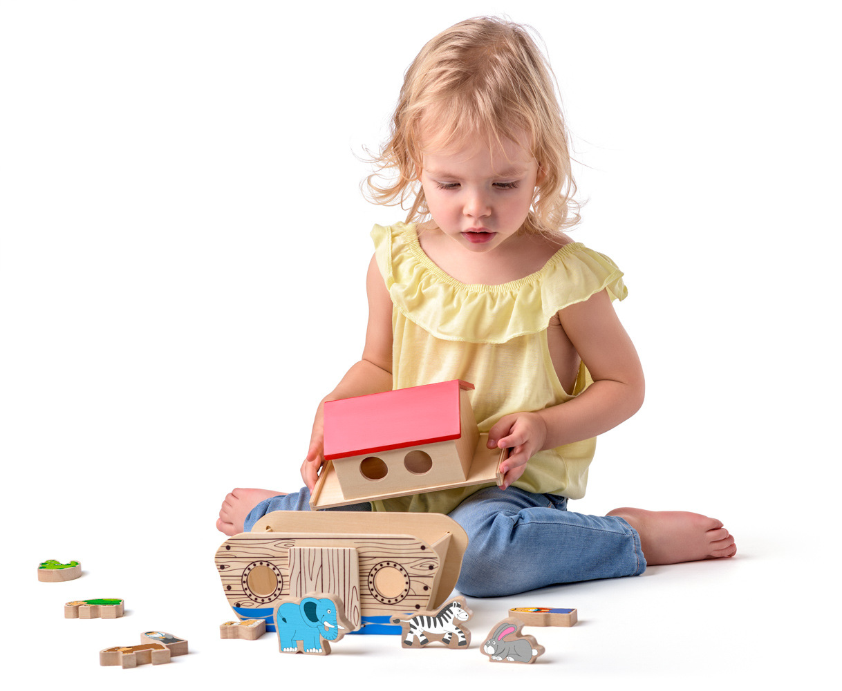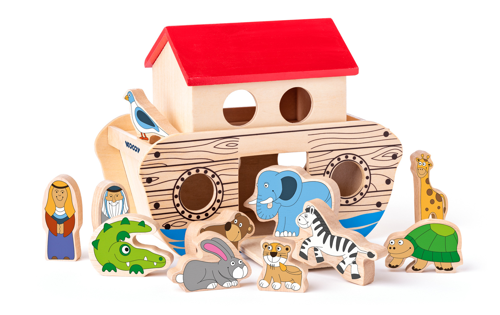Hračka pomáhá rodičům představit a vyprávět dítěti biblický příběh o Noemově arše. Dítě si pak může se zvířátky hrát, vkládat je dovnitř a ven. | Věk: 2+ | Rozměr: 29 x 24 cm