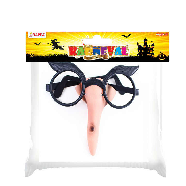 Parádní čarodějnický nos s brýlemi je perfektním doplňkem na každý karnevalový večírek či Halloween párty! Nos je vyroben z gumy a brýle z PVC.