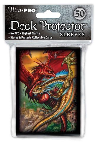 Červený ochraný obal na hrací karty velikosti japonských karet (např. Yu-Gi-Oh!).