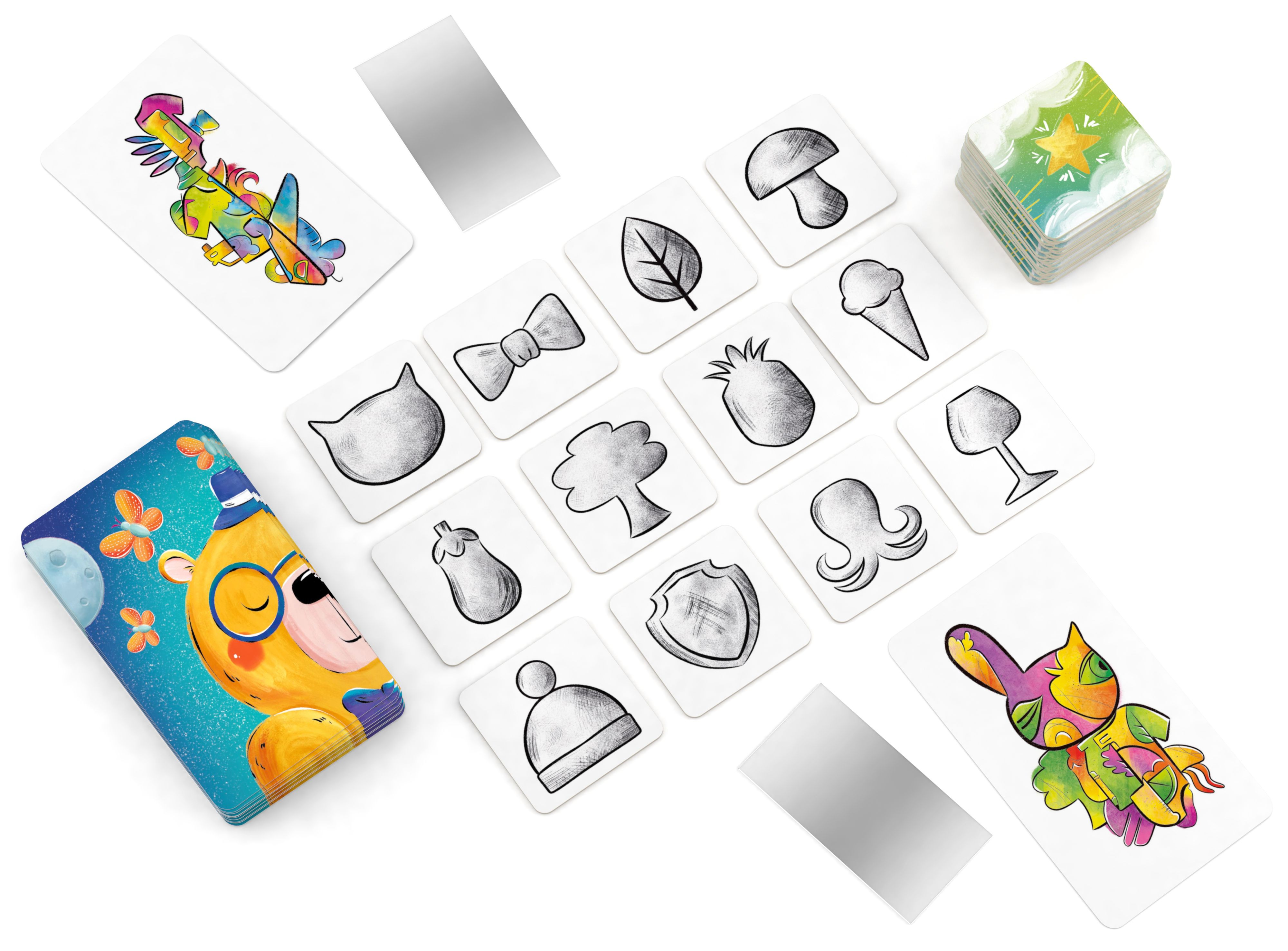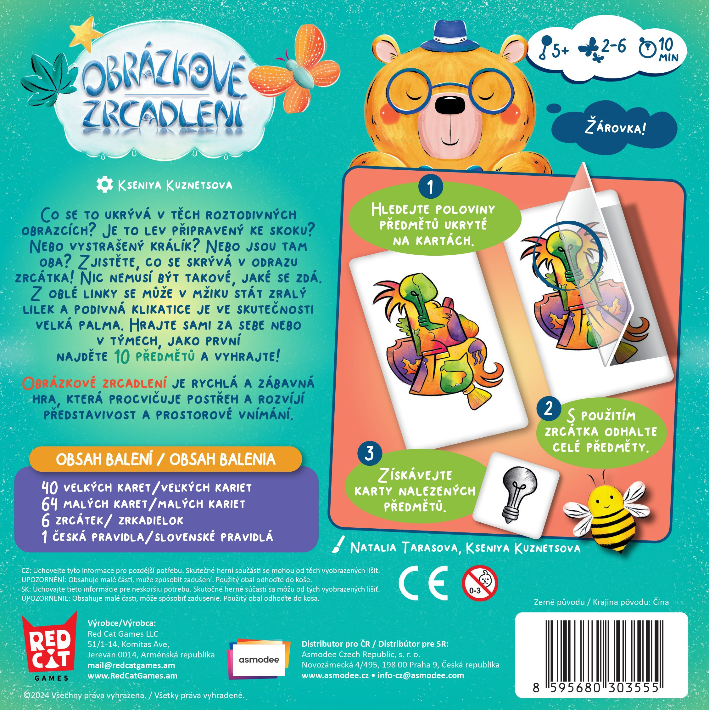 Obsah balení: 40 velkých karet 64 malých karet 6 zrcátek 1 česká a slovenská pravidla