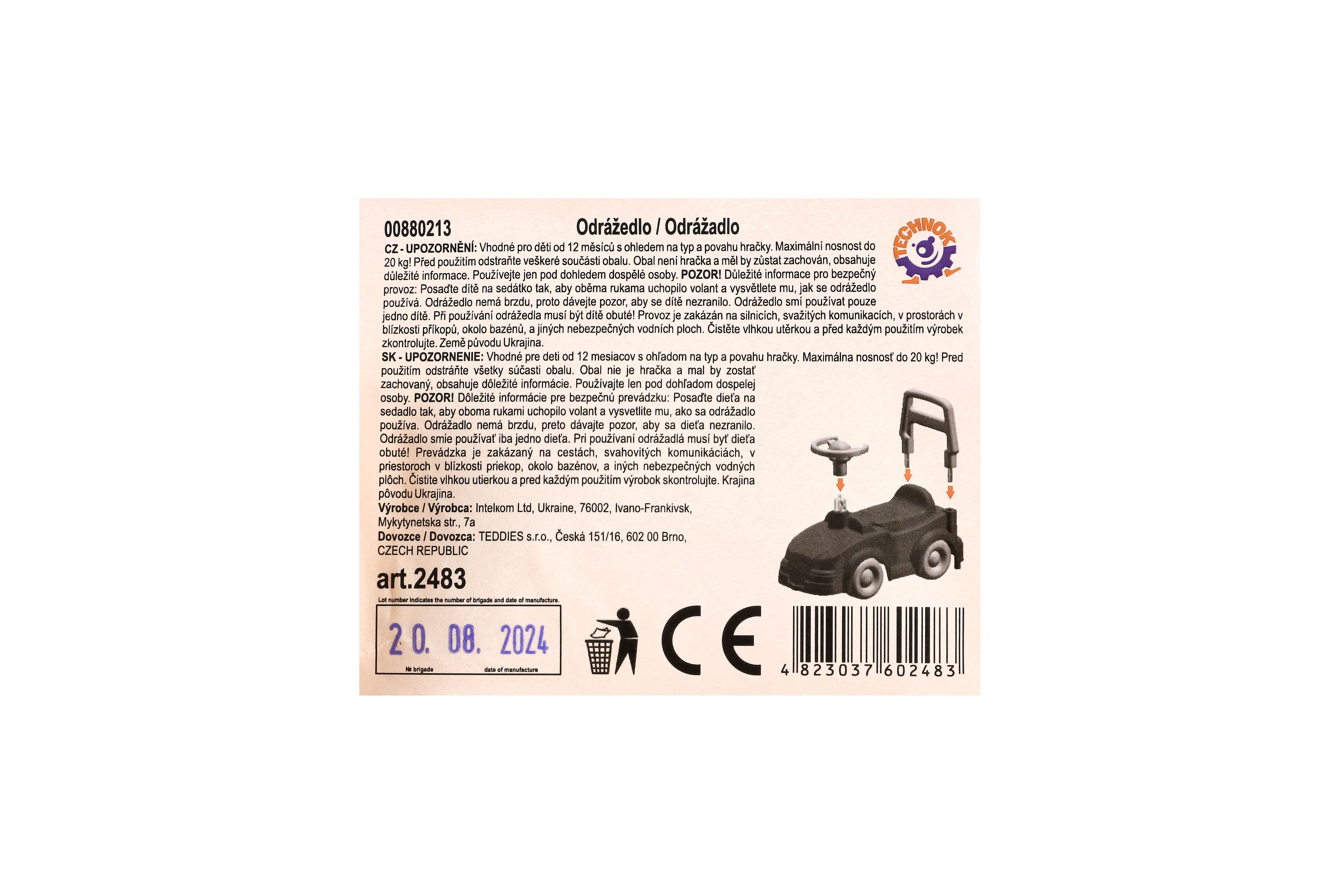 Odrážedlo je pomocníkem při prvních krůčcích vašeho dítěte. Poskytuje mu dostatečnou oporu a pomáhá naučit udržet rovnováhu. Pod sedačkou najdete úložný prostor. Na volantu pískací klakson. Vyrobeno z kvalitního a odolného materiálu. Maximalní nosnost 20 kg. Rozměry výrobku 25 x 36 x 57cm. Vhodné pro děti od 12 měsíců.