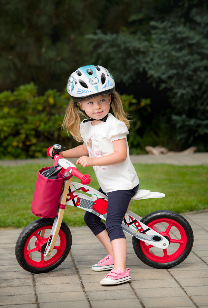 Odrážedlo z dřevěného materiálu v designu motorky v červeném barevném provedení je vynikající pro přípravu na první jízdu na kole. Odrážedlo má lehkou dřevěnou konstrukci . Systém dorazů řídítek, který brání nehodám při přetočení, více poloh sedla a bezpečnostní zvonek. Odnímatelná , látková kapsička na řídítkách. Děti získají rovnováhu a naučí se řídit. Rozměr:85 x 55 cm výška. Vhodné pro děti: 3+