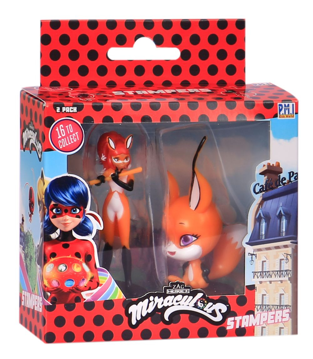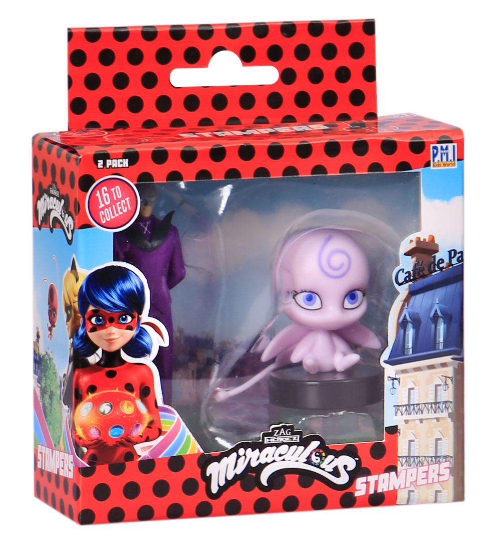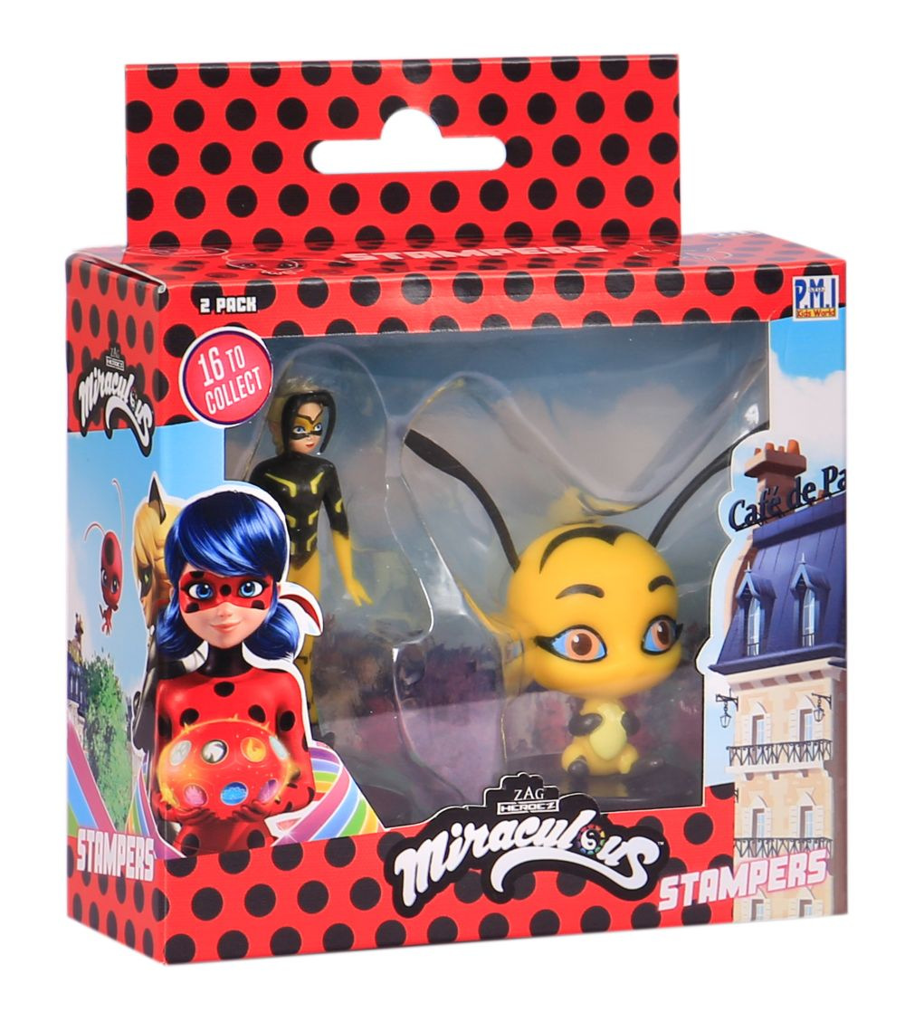 Dvě kouzelné figurky z pohádky Miraculous: Beruška a černý kocour s razítky. Tyto figurky mají ve spodní části razítka, takže děti si mohou ozdobit školní práce, vytvořit nové obrázky a další. Vhodné pro děti od 3 let.