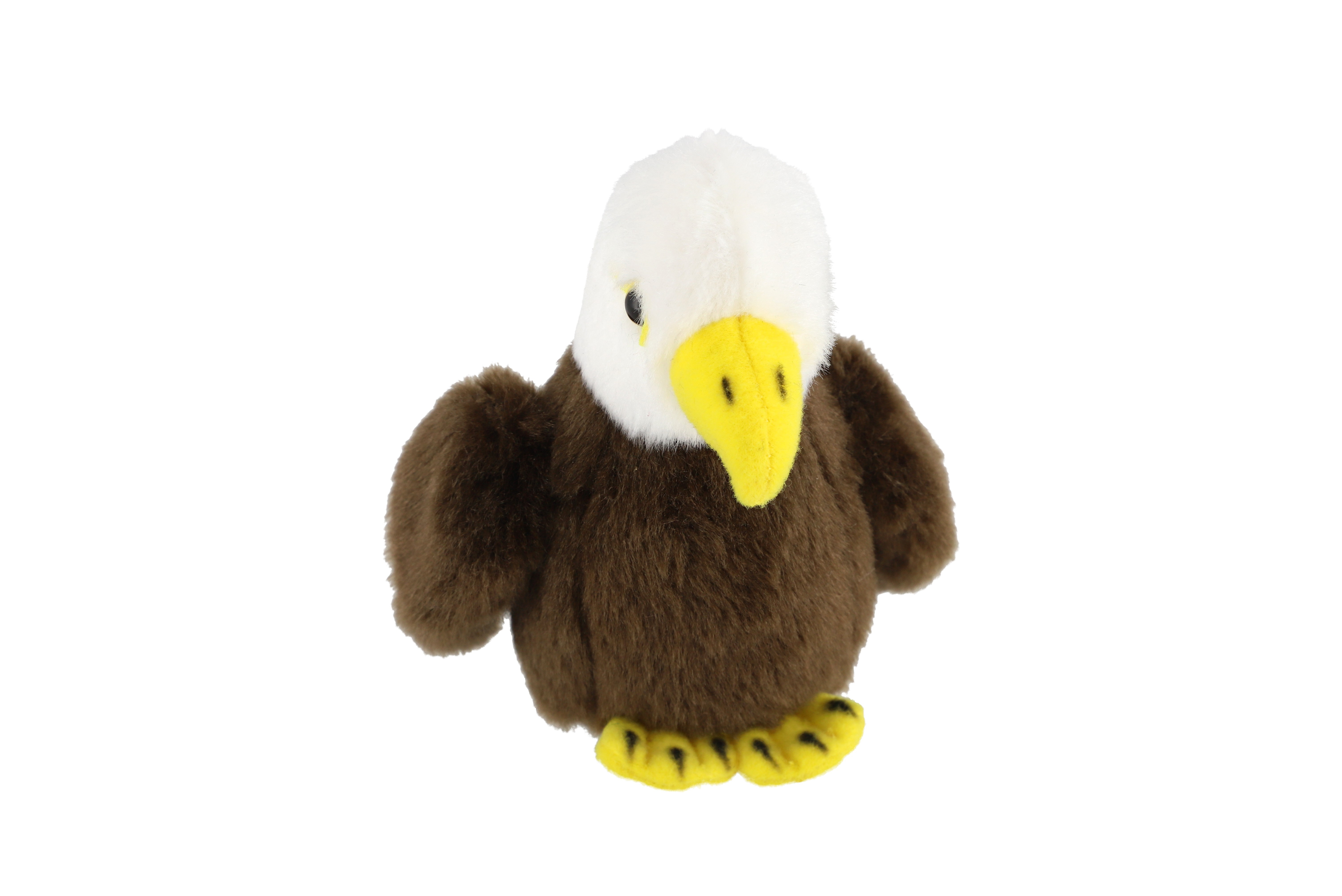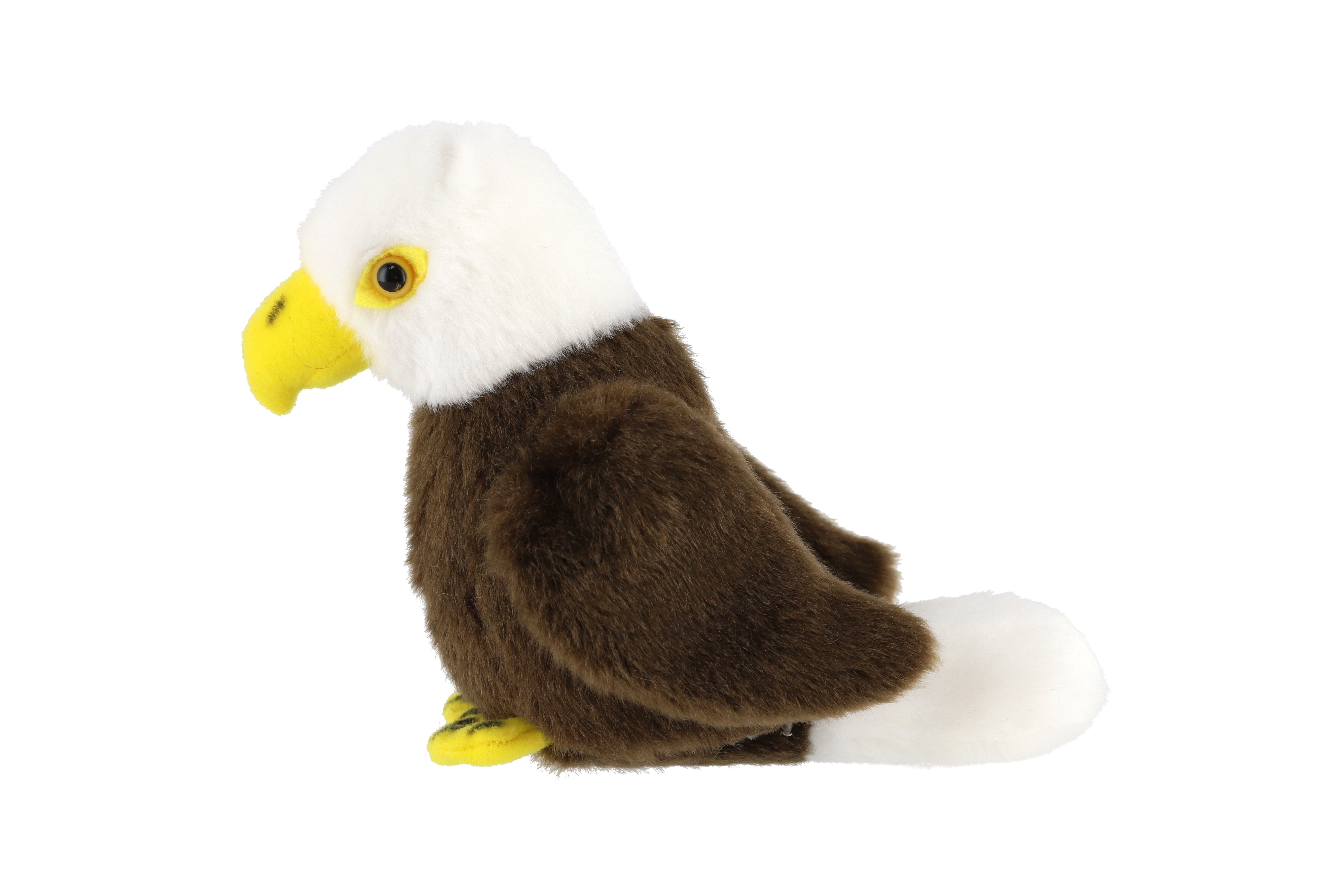 Je vyroben z kvalitního a hebkého plyše, který je příjemný na dotek a ideální pro mazlení nebo jako dekorace. Jeho realistický vzhled doplňují detailně zpracované prvky, jako jsou charakteristická bílá hlava, hnědé tělo a žlutý zobák s drápky, což mu dodává autentický a působivý vzhled. S kompaktní velikostí 13 cm je tento plyšový orel snadno přenosný, ideální pro malé dětské ručky nebo jako drobná dekorace do dětského pokoje. Vhodné pro děti od narození.