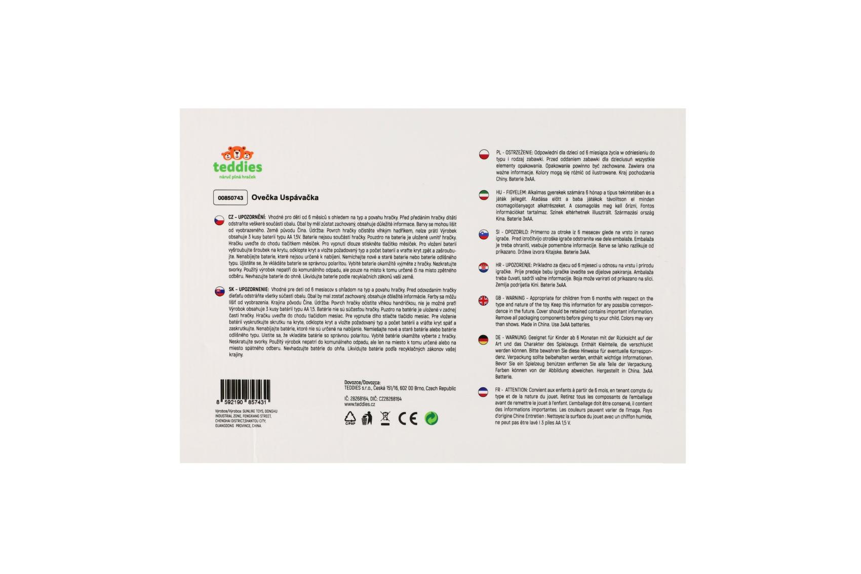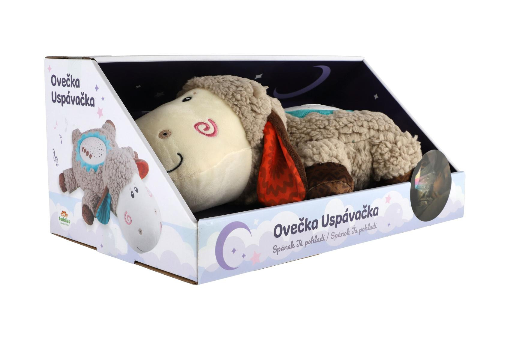 Ovečka uspávačka/usínáček projektor plyš/plast 35x22cm na baterie se zvukem,světlem v krabici 6m+