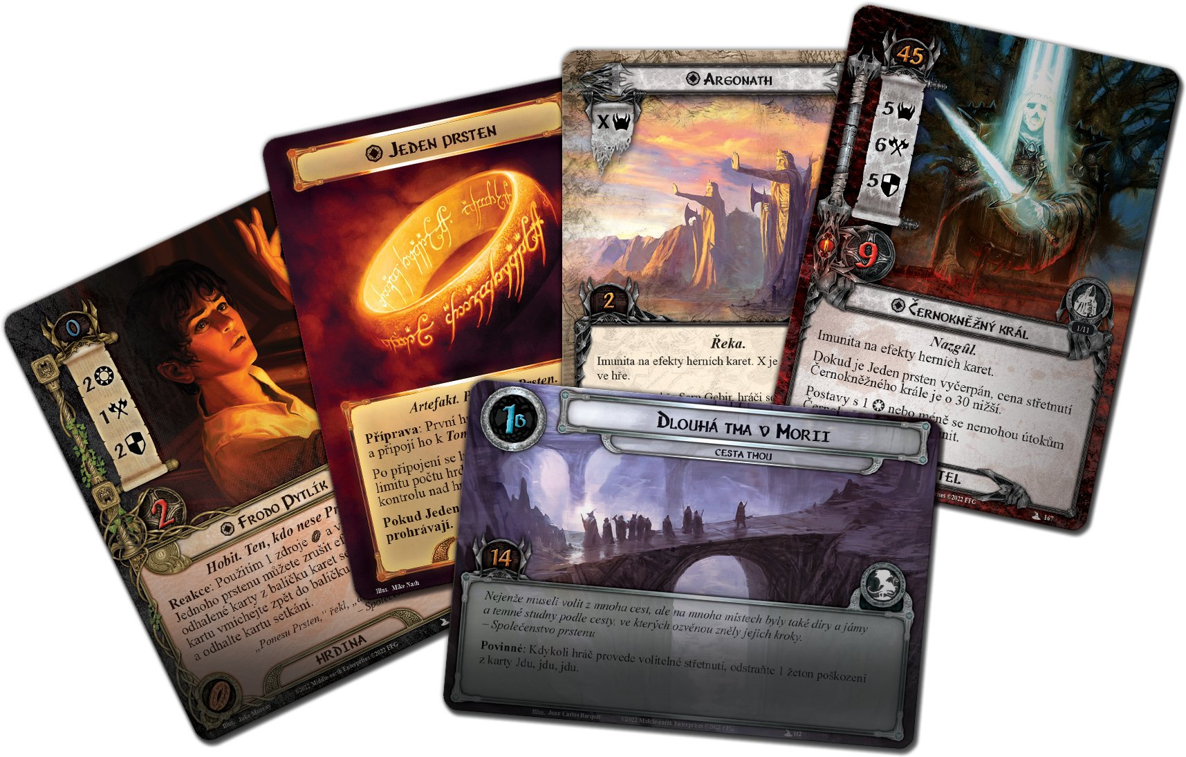 Obsah balení: 1 pravidla hry 7 karet hrdinů 57 herních karet 22 karet úkolů 209 karet setkání 6 karet kampaní 28 karet výhod/strastí