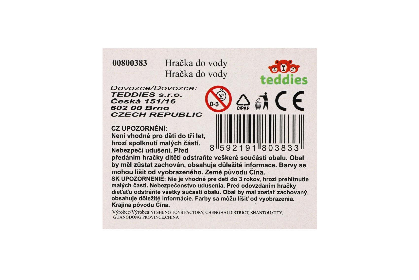 Popis Teddies Panáček na lehátku na natažení do vody plast 13x9cm 4 barvy