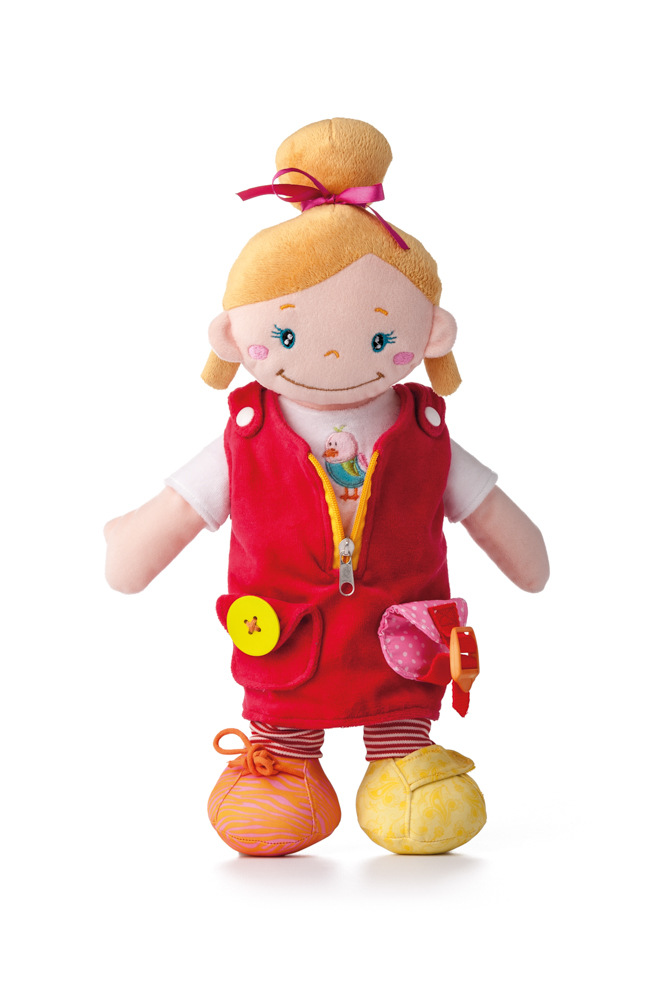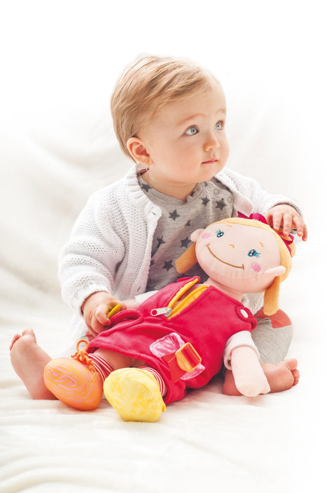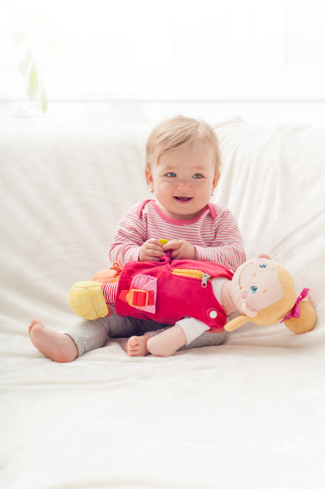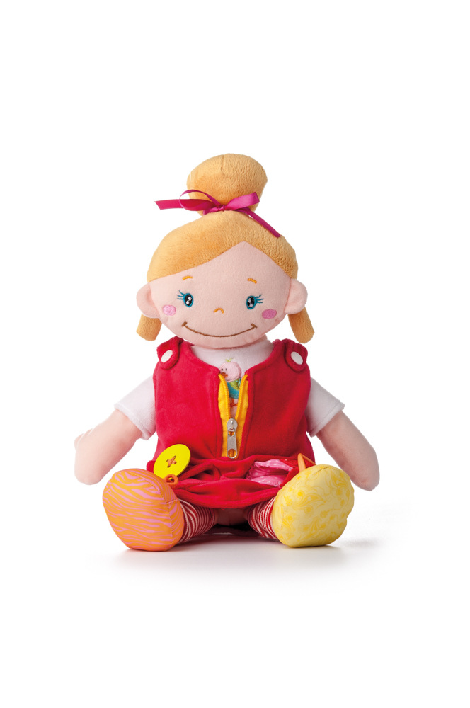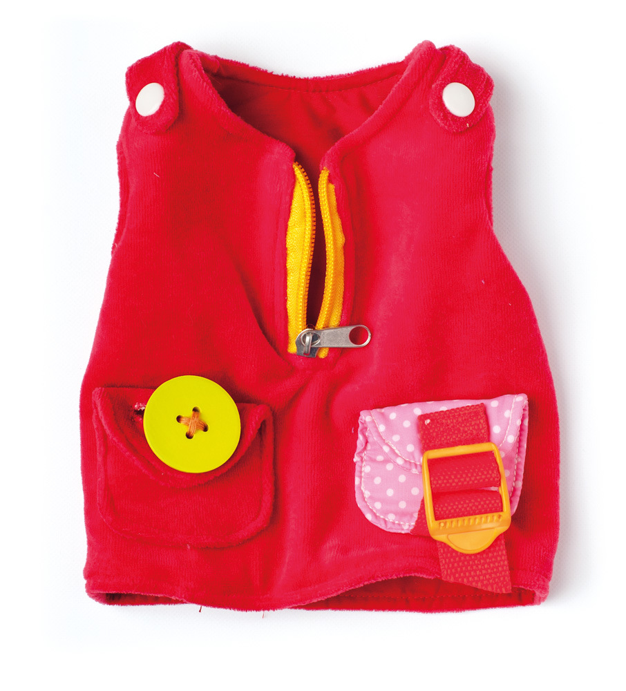 Interaktivní panenka je mazlíček , ale také edukativní kamarádka. Děti si při hře rozvíjejí jemnou motoriku. Šatičky lze svlékat, na nožkách je suchý zip a tkaničky pro opakovaný trénink. Na kapse u vestičky je všitý veliký dřevěný knoflík pro trénink zapínání.