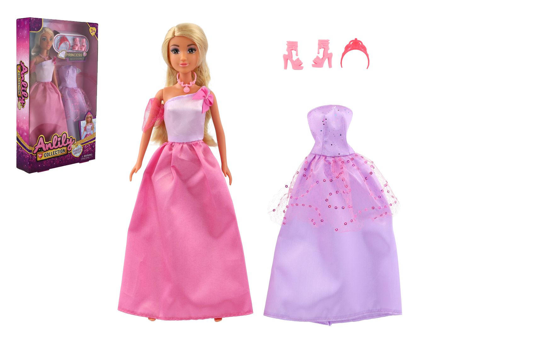 Panenka princezna Anlily plast 30cm s náhradními šaty + doplňky v krabici 19x32x5cm