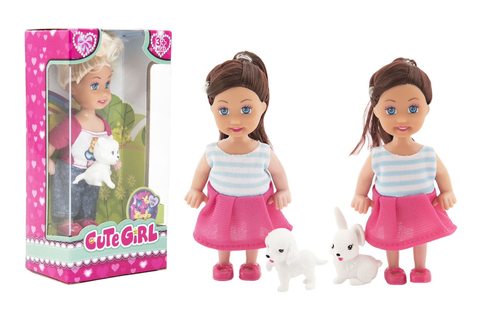 Elegantní panenka s mazlíčkem. Díky své velikosti bude skvělou kamarádkou pro vaše holčičky. Díky po