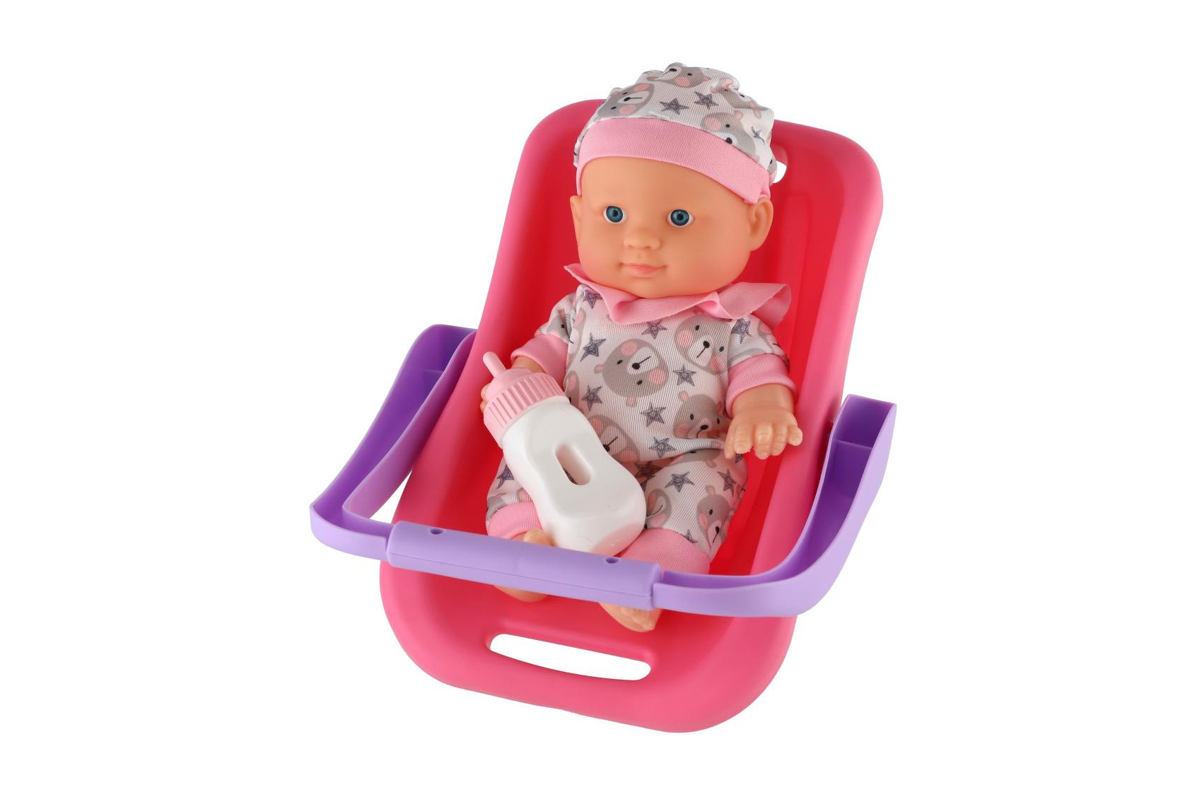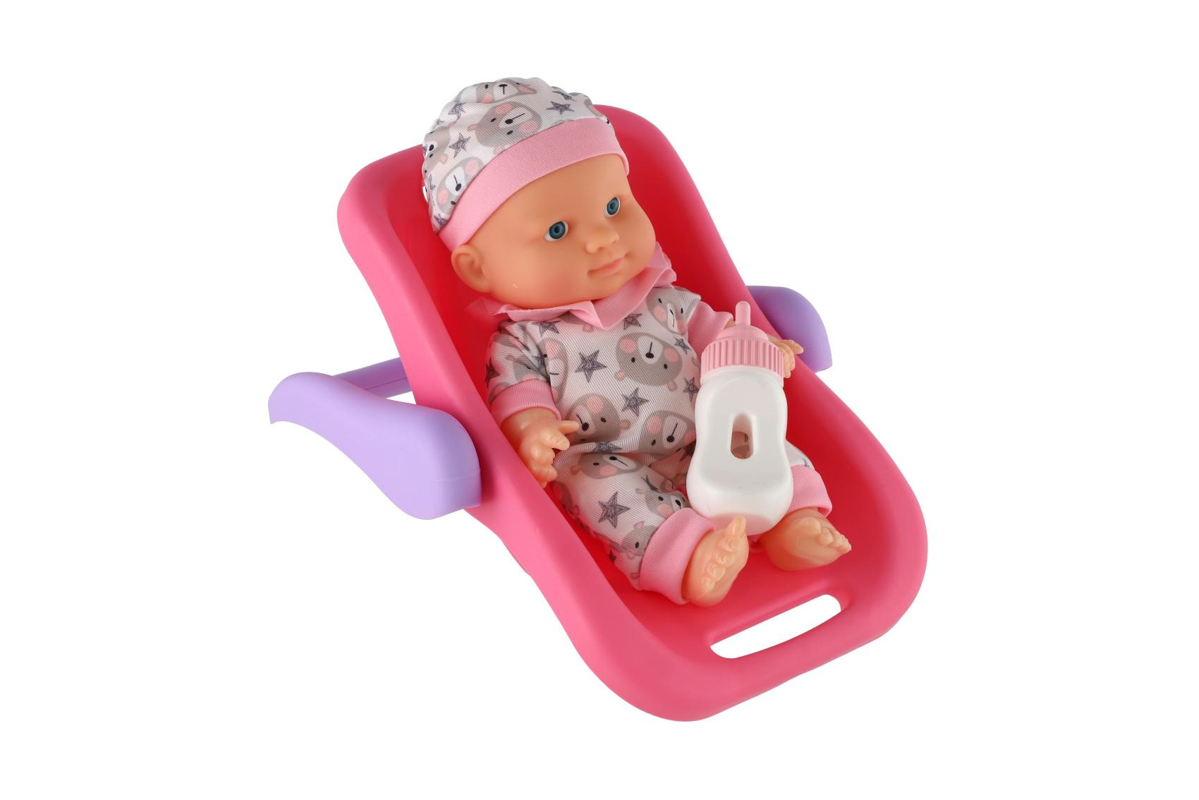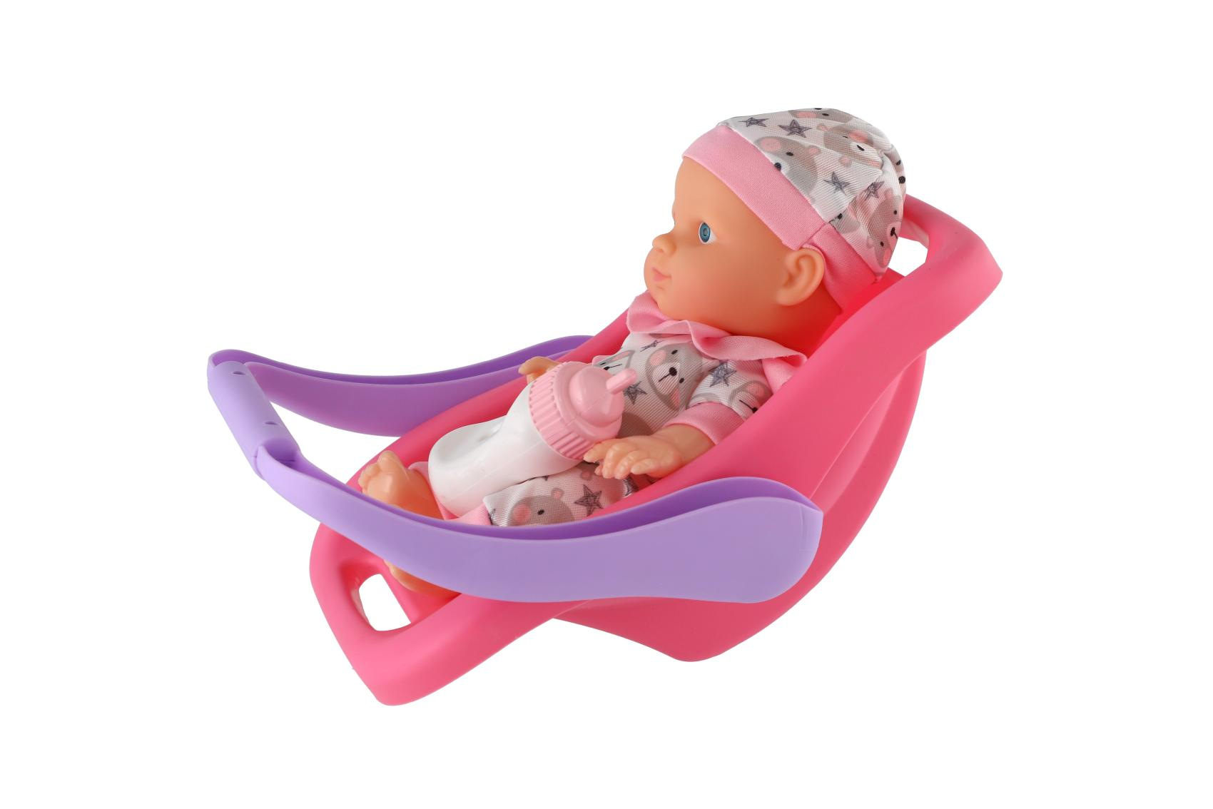 Teddies Panenka miminko plast 22cm pevné tělo v nosítku/autosedačce s lahvičkou 2 barvy