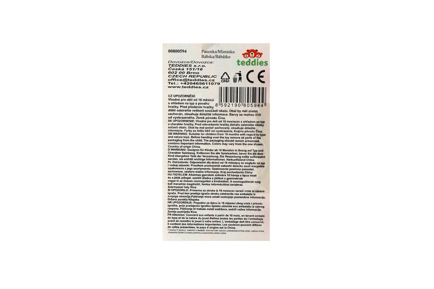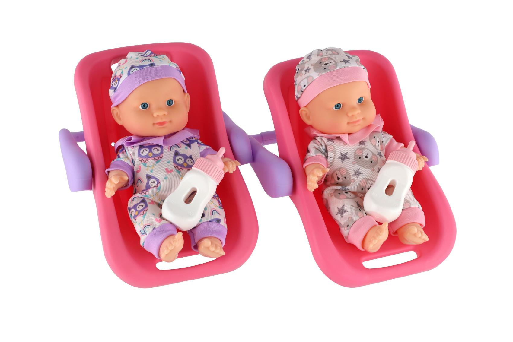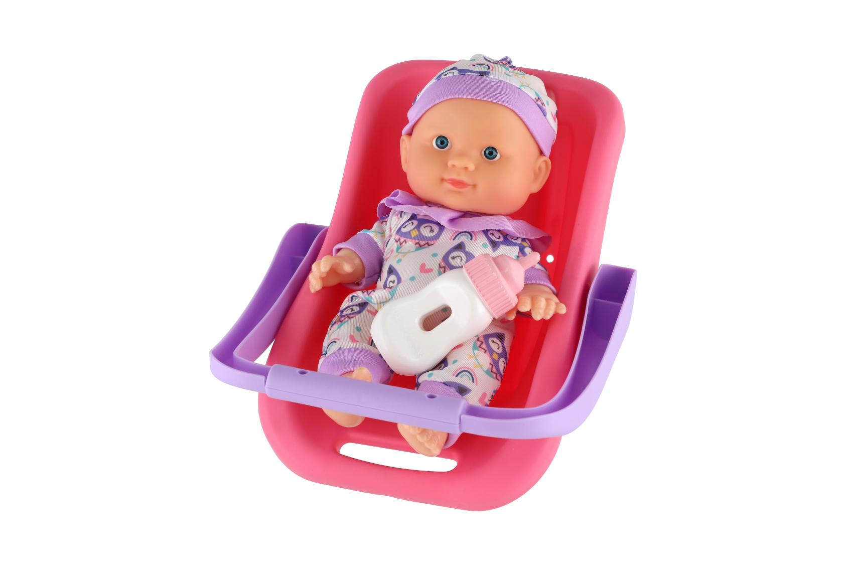 Teddies Panenka miminko plast 22cm pevné tělo v nosítku/autosedačce s lahvičkou 2 barvy