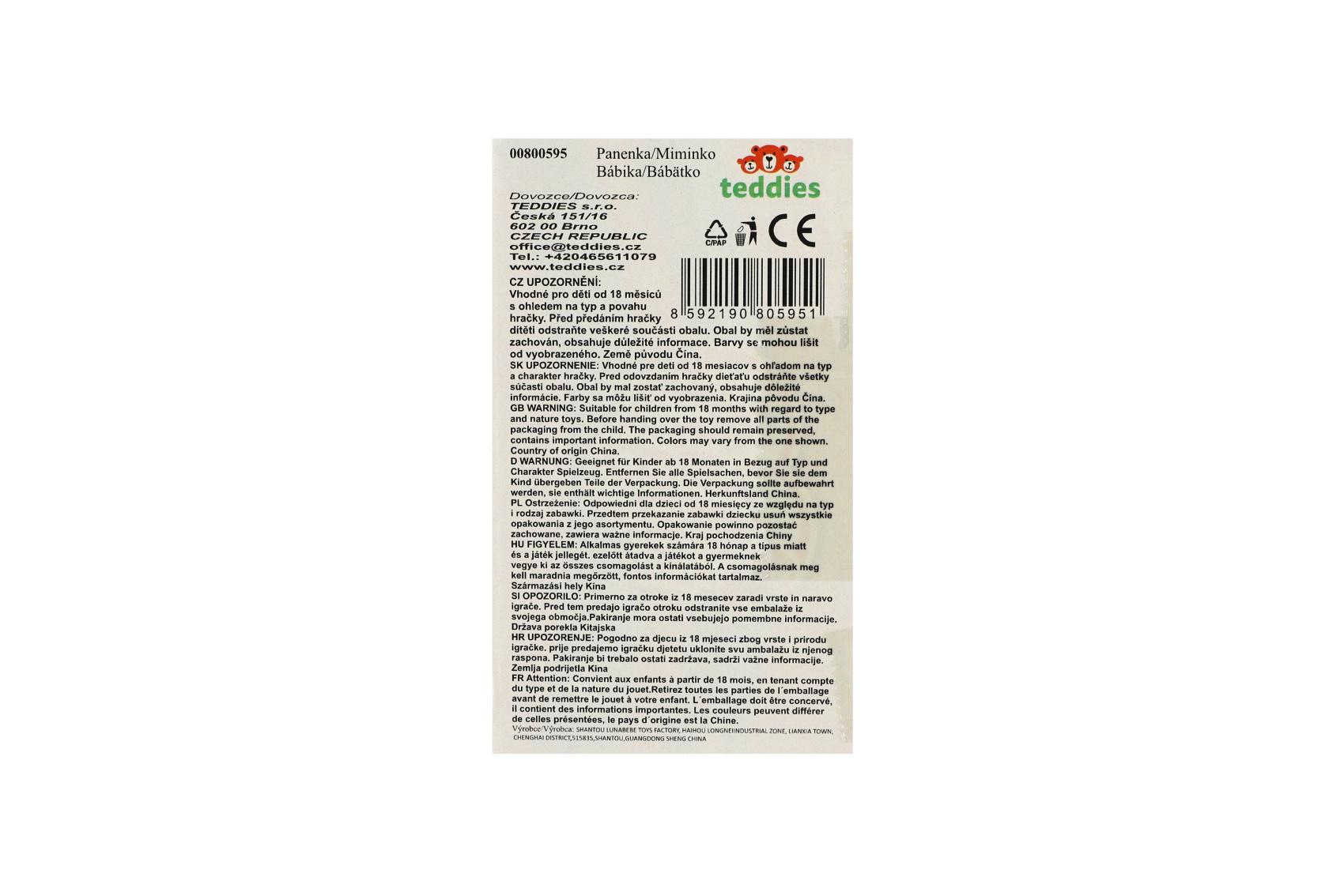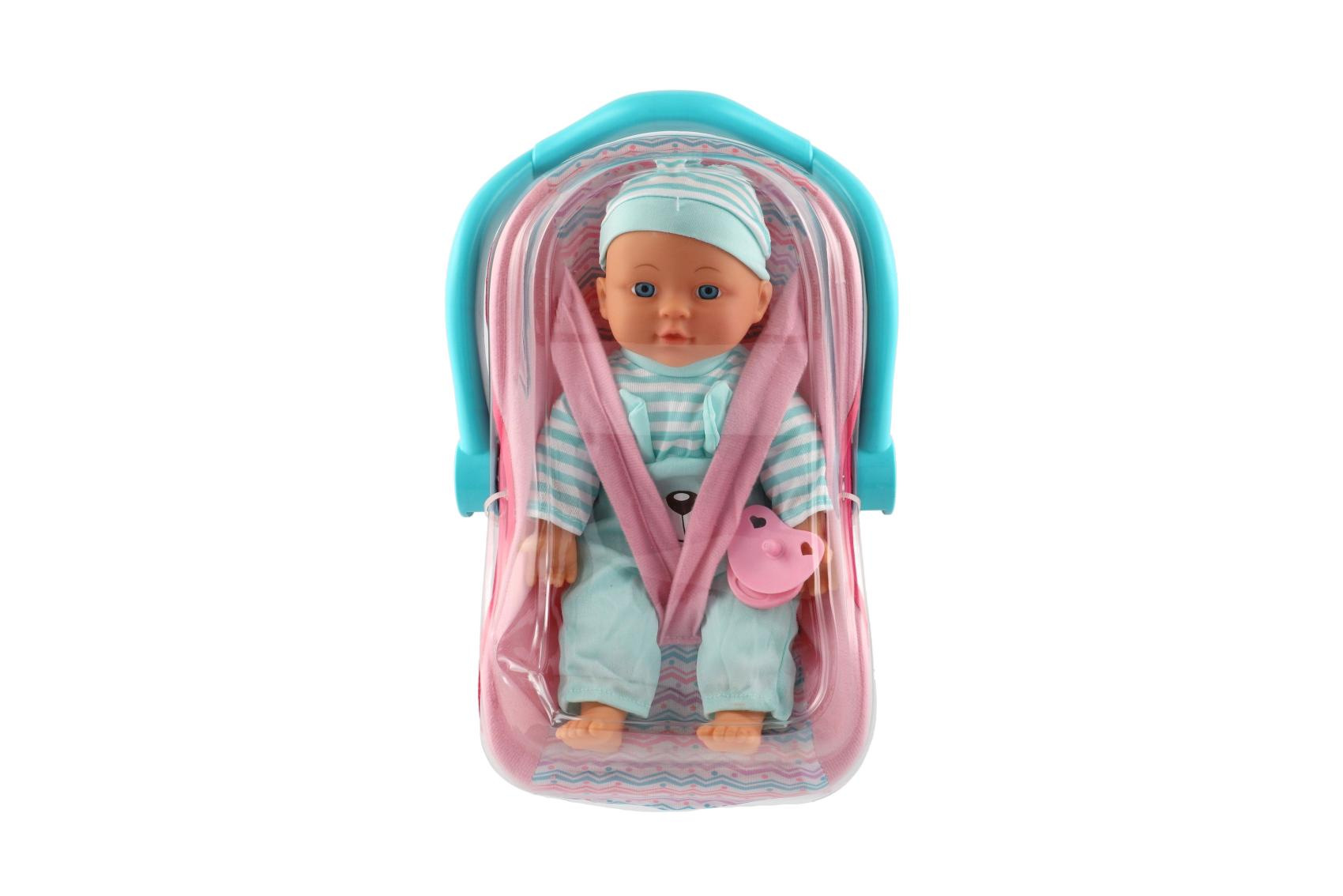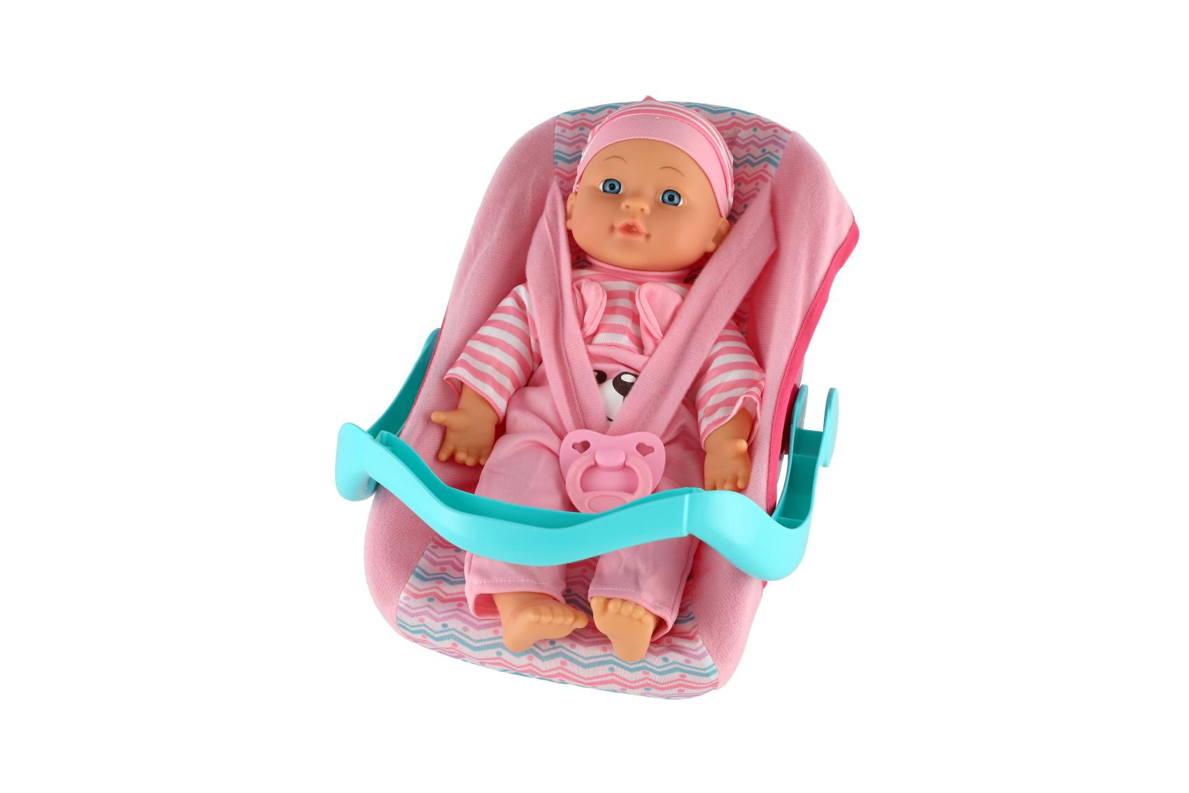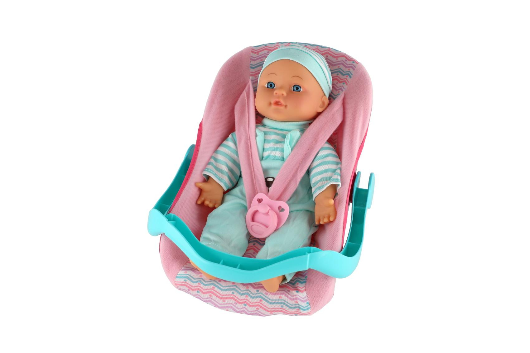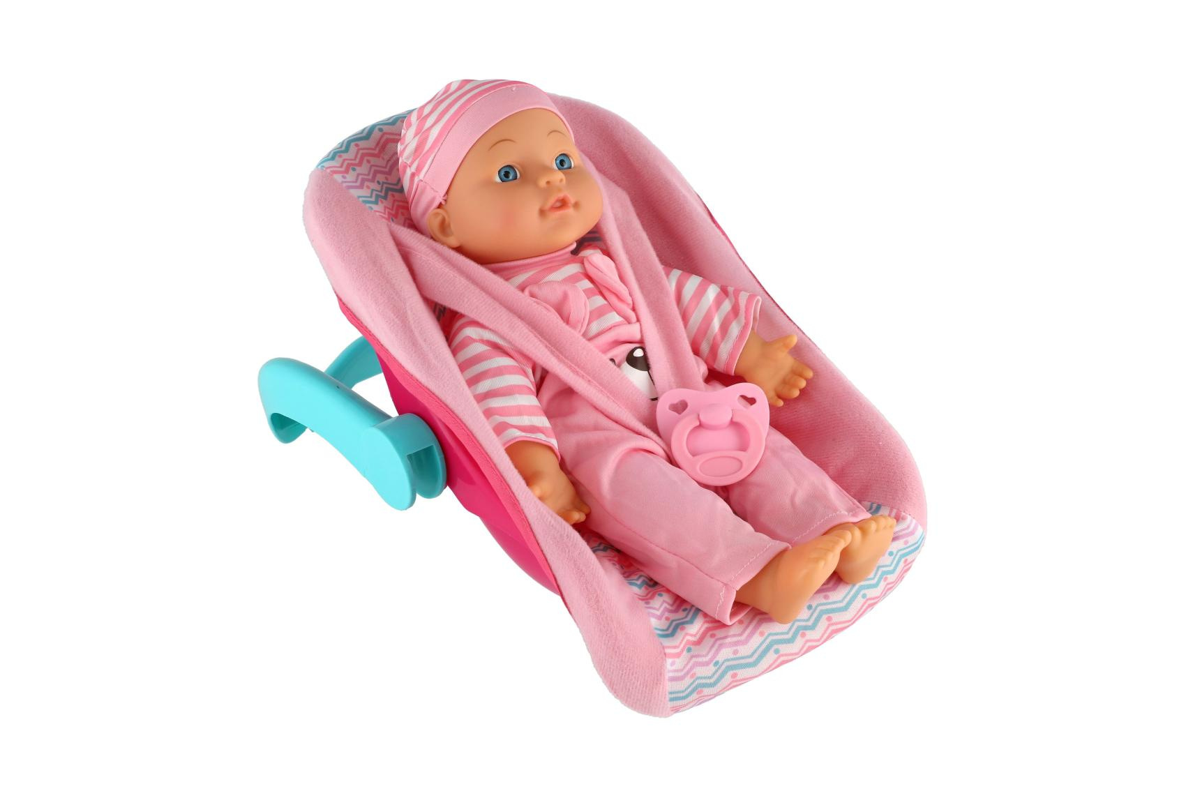 Teddies Panenka miminko plast/látka 30cm měkké tělo v nosítku/autosedačce s dudlíkem 2 barvy