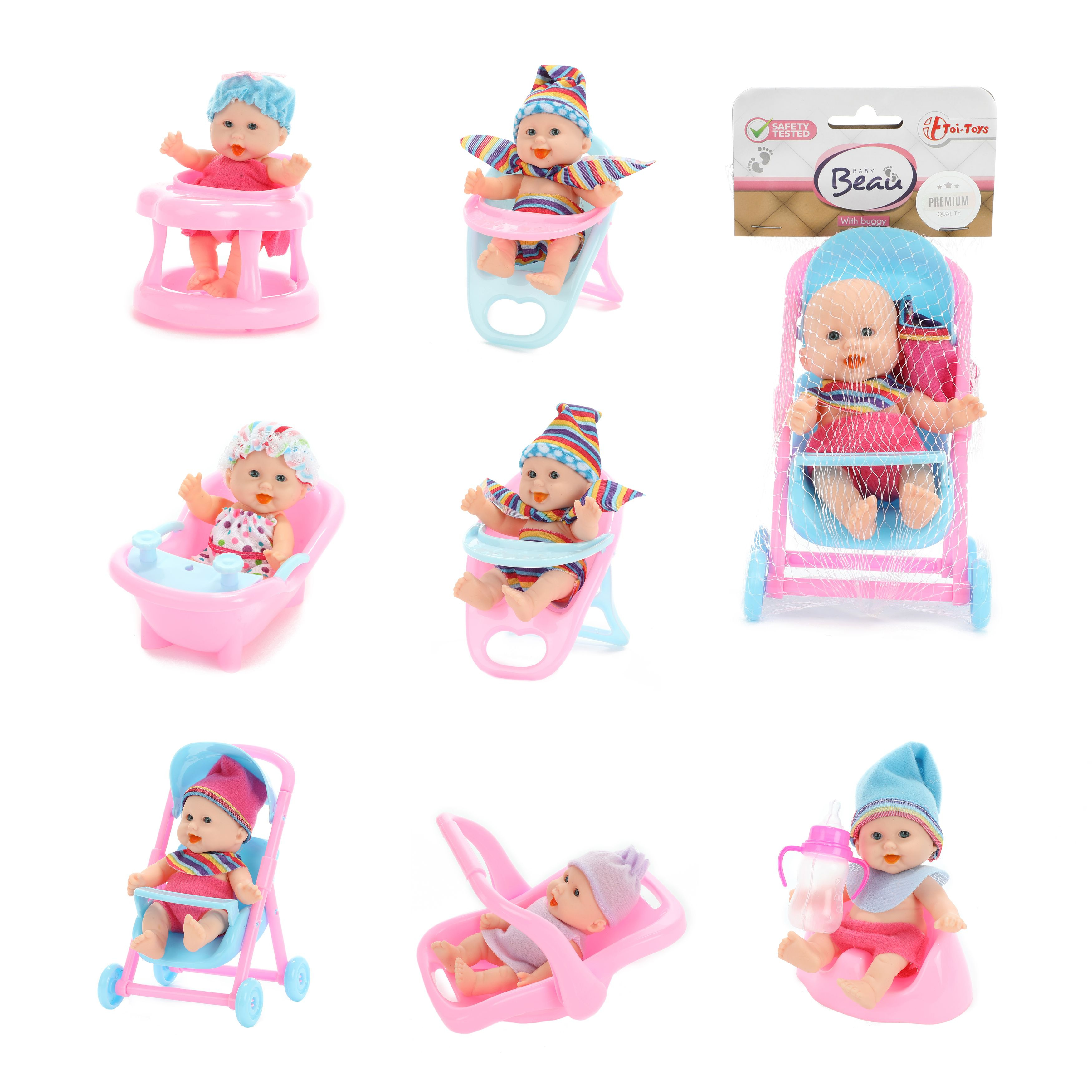 Touto panenkou zaručeně uděláte radost každé holčičce. Můžete si vybrat panenku ve vaničce, v kočárku, chodítku, židličce nebo i s nočníkem. Každá panenka má u sebe doplněk. Rozměr panenky: 11 cm Vhodné od 3 let
