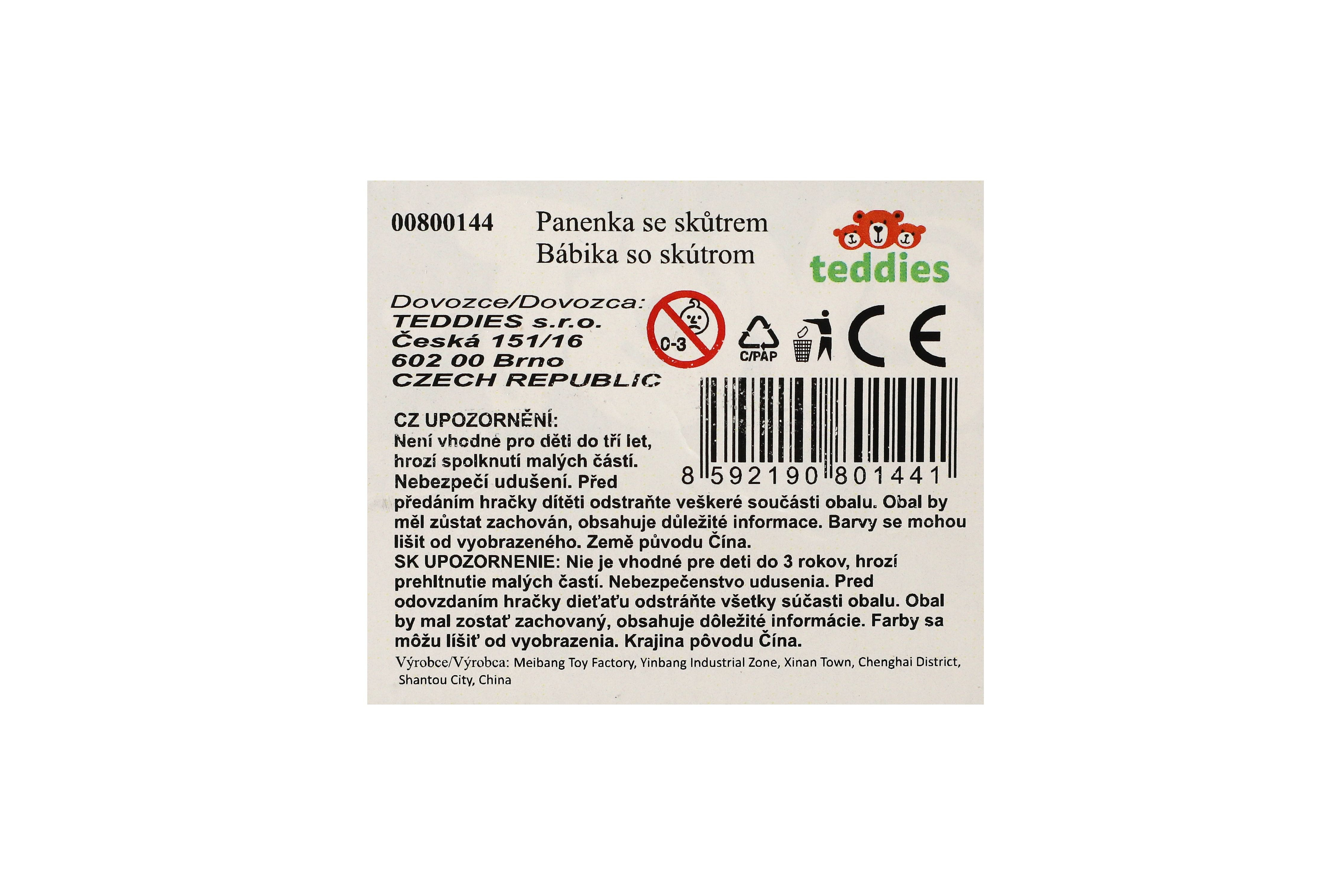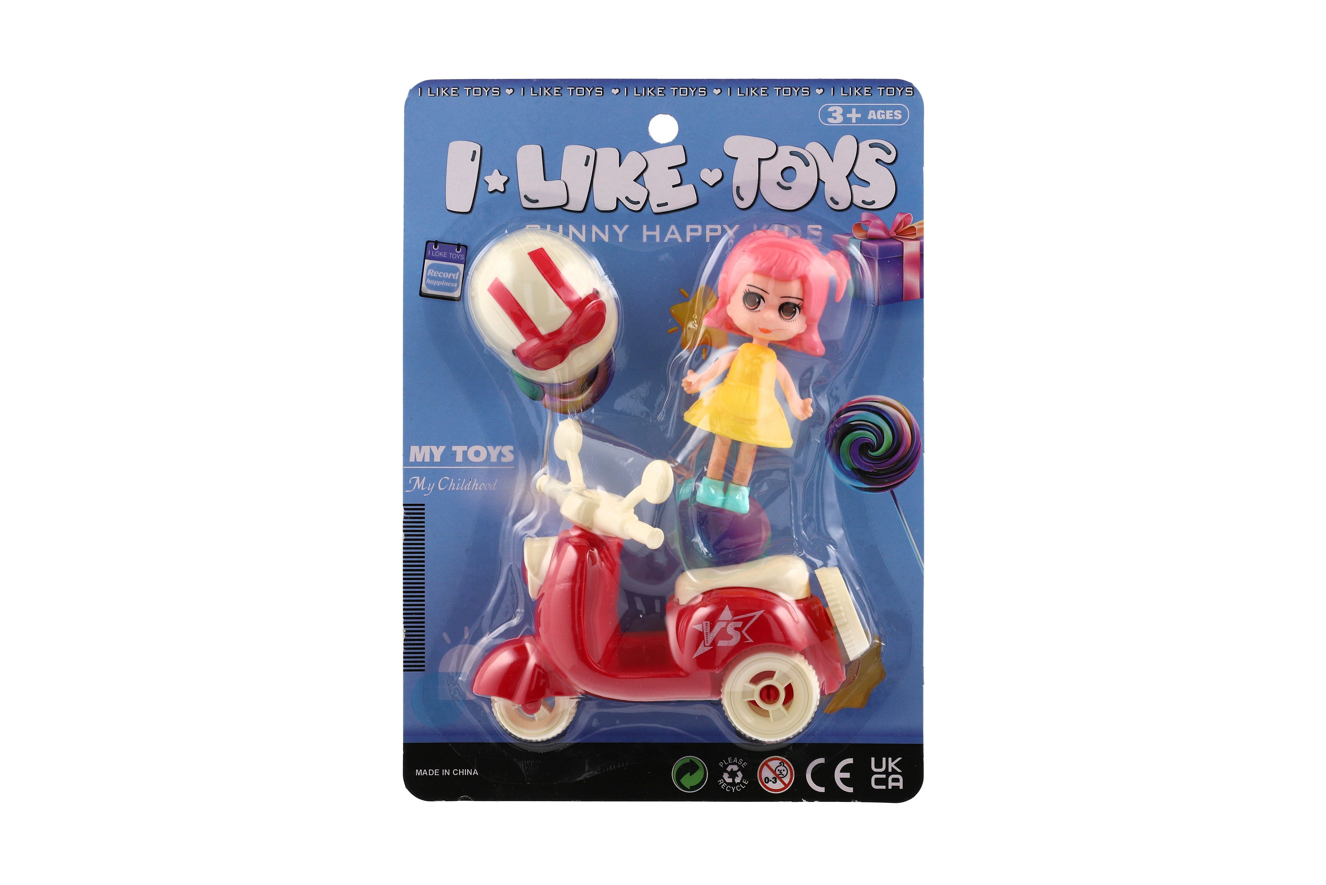 Popis Teddies Panenka se skútrem plast 9cm s helmou 4 barvy na kartě 18x25x5cm