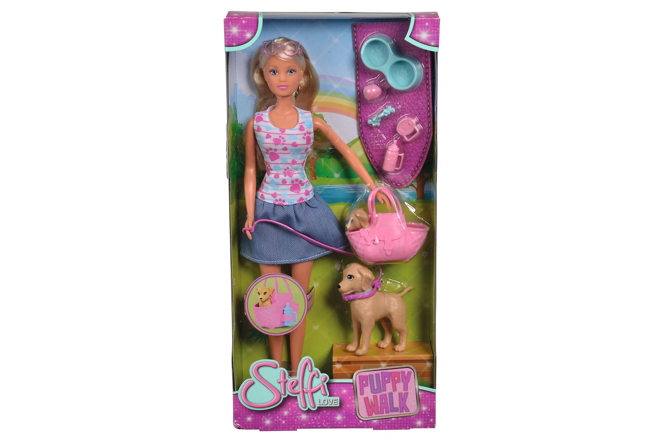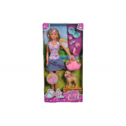Panenka Steffi na procházce s pejskem a štěňátkem, včetně tašky a příslušenství, 10 ks. Výška panenky 29 cm.